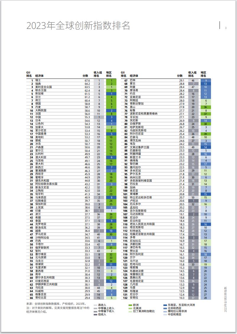 2023全球創(chuàng)新指數(shù)排名