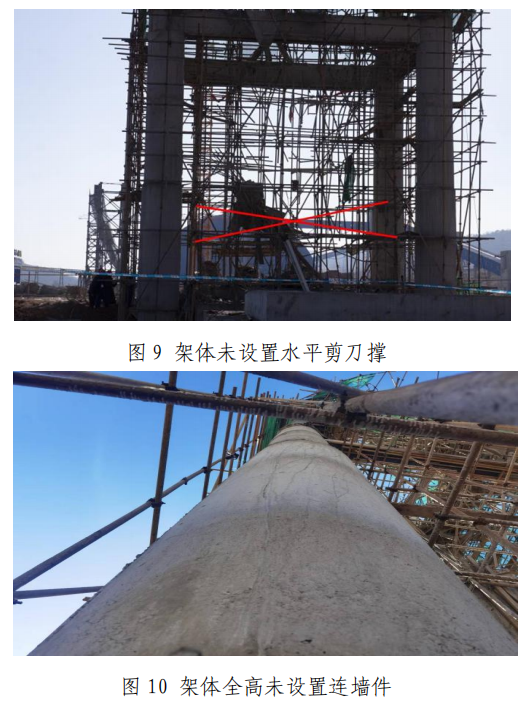 調(diào)查報(bào)告顯示該事故的直接原因?yàn)?,模架支撐體系立桿縱橫向間距過大,立桿軸向應(yīng)力嚴(yán)重超過鋼管標(biāo)準(zhǔn)設(shè)計(jì)值;模架支撐體系水平桿步距過大,架體未設(shè)置水平剪刀撐,架體高寬比不滿足規(guī)范要求且全高未設(shè)置連墻件,架體與框架結(jié)構(gòu)未形成有效連接,降低了腳手架的整體穩(wěn)定性。
