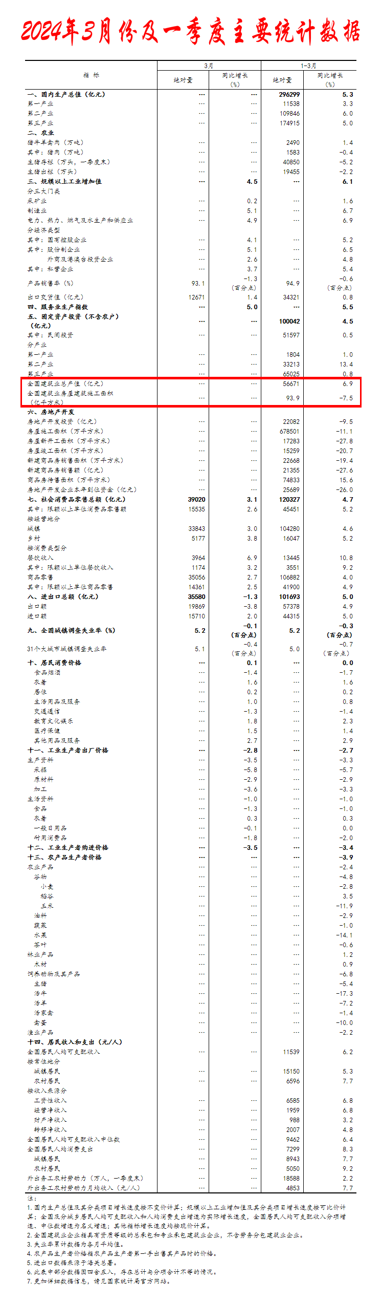總的來看,一季度國民經濟開局良好,積極因素累積增多,為實現全年目標任務打下了較好基礎。但也要看到,外部環(huán)境復雜性、嚴峻性、不確定性上升,經濟穩(wěn)定向好基礎尚不牢固。下階段,要堅持以習近平新時代中國特色社會主義思想為指導,抓緊抓好中央經濟工作會議和全國“兩會”精神細化落實,堅持穩(wěn)中求進、以進促穩(wěn)、先立后破,完整、準確、全面貫徹新發(fā)展理念,加快構建新發(fā)展格局,著力推動高質量發(fā)展,積極培育發(fā)展新質生產力,加大宏觀政策實施力度,切實增強經濟活力、防范化解風險、改善社會預期,鞏固和增強經濟回升向好態(tài)勢,持續(xù)推動經濟實現質的有效提升和量的合理增長。