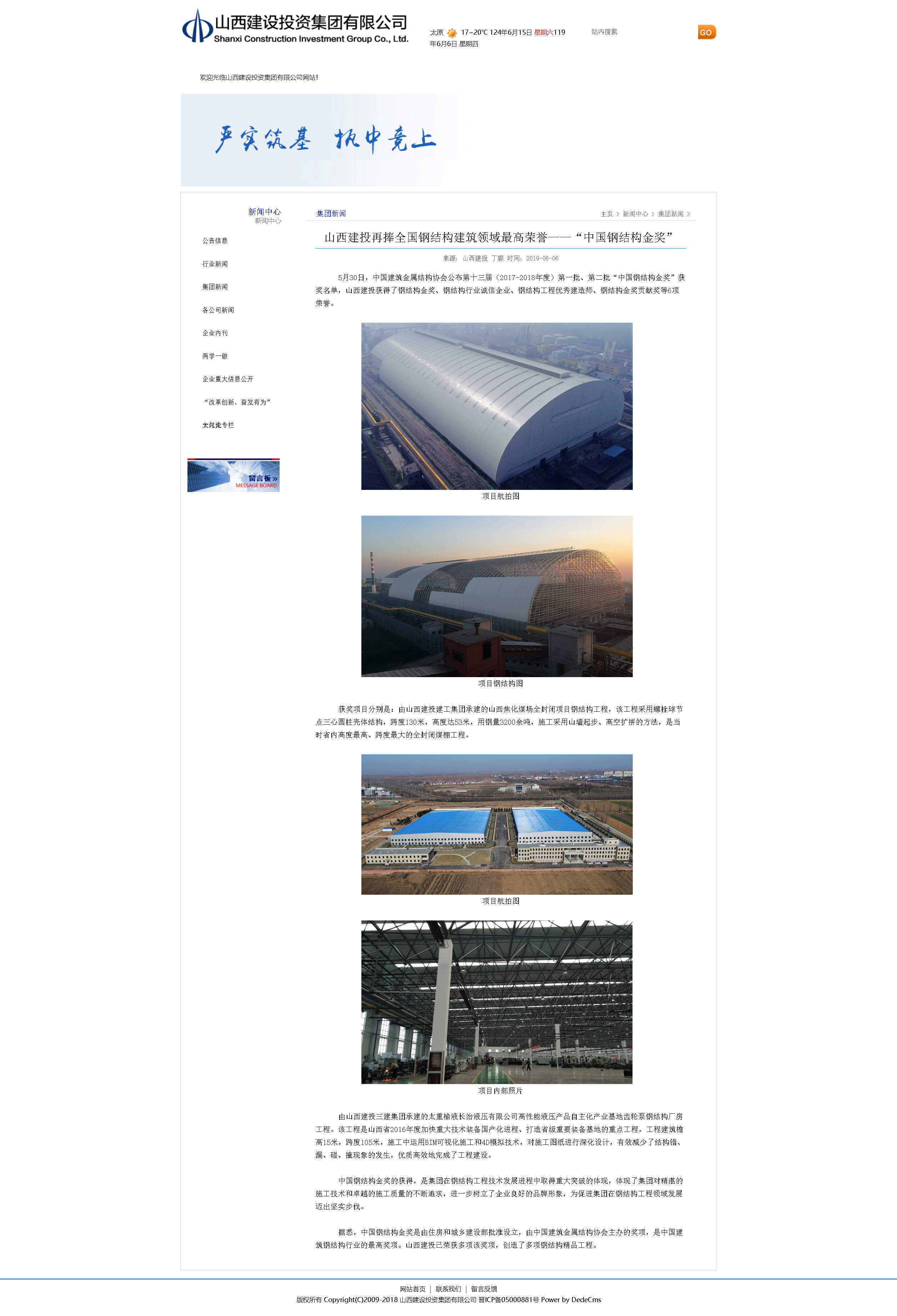 目前,山西三建集團(tuán)已累計(jì)榮獲五項(xiàng)中國鋼結(jié)構(gòu)金獎(jiǎng)。這些殊榮的獲得不僅是對(duì)三建鋼構(gòu)板塊信譽(yù)和綜合實(shí)力的認(rèn)可,更是對(duì)企業(yè)品牌效應(yīng)和建設(shè)項(xiàng)目品質(zhì)的充分肯定。同時(shí),這些獎(jiǎng)項(xiàng)不僅展示了集團(tuán)公司在工程管理、技術(shù)水平、施工規(guī)模等方面的綜合實(shí)力,也進(jìn)一步凸顯了集團(tuán)公司在推動(dòng)城市建設(shè)方面所作出的重要貢獻(xiàn)。未來,集團(tuán)公司將倍加珍惜榮譽(yù),再接再厲,不斷提升管理水平、打造精品工程,為我國建筑鋼結(jié)構(gòu)事業(yè)的持續(xù)健康發(fā)展做出新的更大貢獻(xiàn)。(趙孟然)