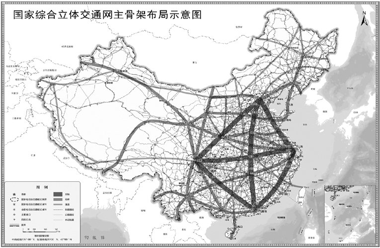 “6軸、7廊、8通道”,即京津冀—長三角、長三角—粵港澳等6條主軸,京哈、京藏等7條走廊和綏滿、京延等8條通道,它們是國家綜合立體交通網(wǎng)中最為關(guān)鍵的主干線、主通道,也是我國國土空間開發(fā)的主軸線、國民經(jīng)濟循環(huán)的主動脈。