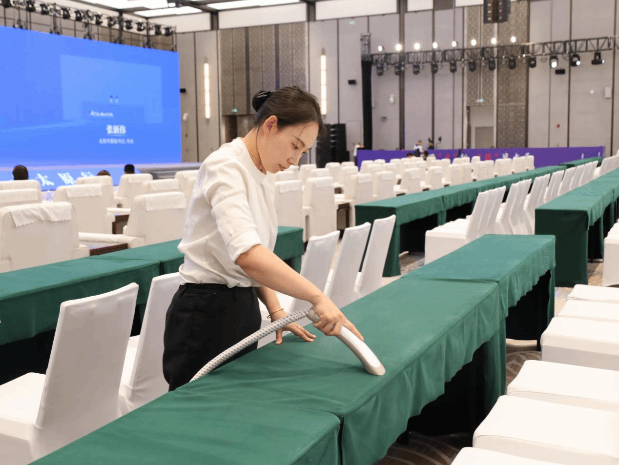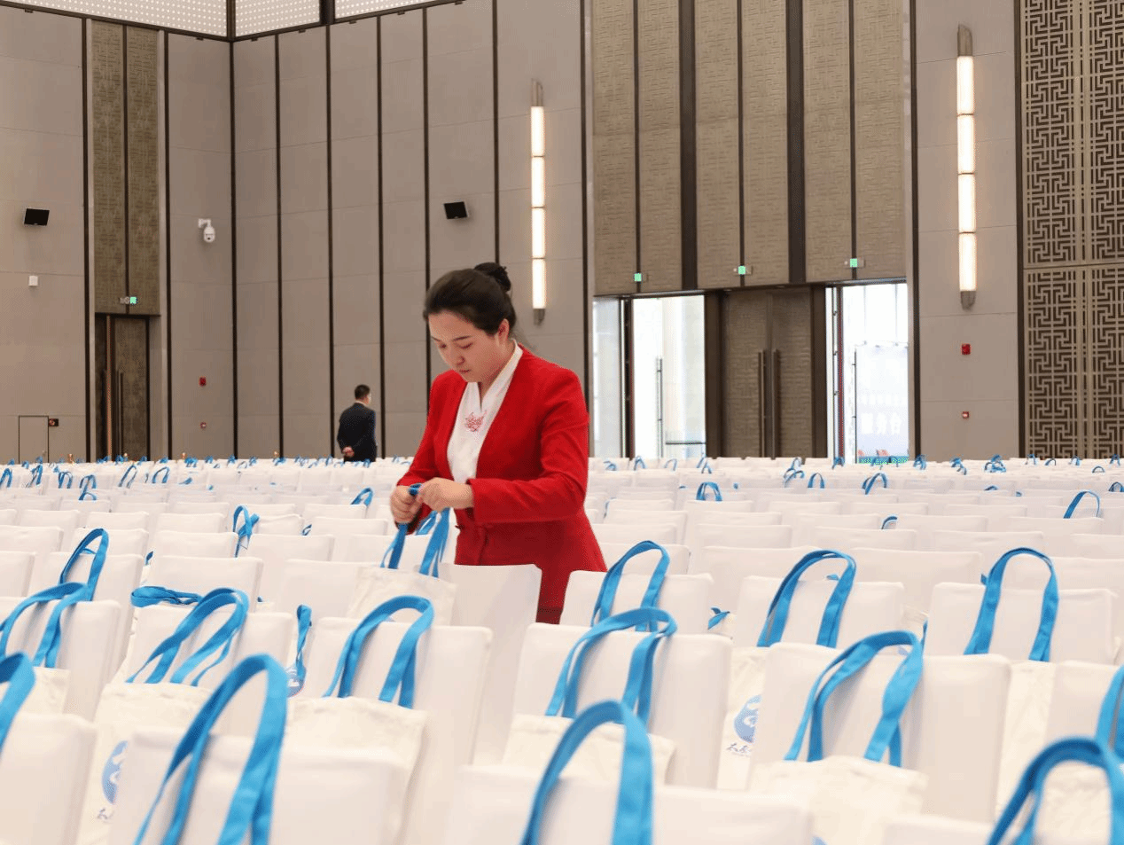 組建綜合統(tǒng)籌組、信息協(xié)調(diào)組、會議保障組等8個保障小組,全方位保障會務(wù)、餐飲、安全等各環(huán)節(jié)流程順利進行?;顒忧埃骰I備組仔細確認活動物料是否缺漏、會議音響設(shè)備是否正常、桌椅擺放是否整齊……確保為嘉賓提供良好舒適的交流環(huán)境。