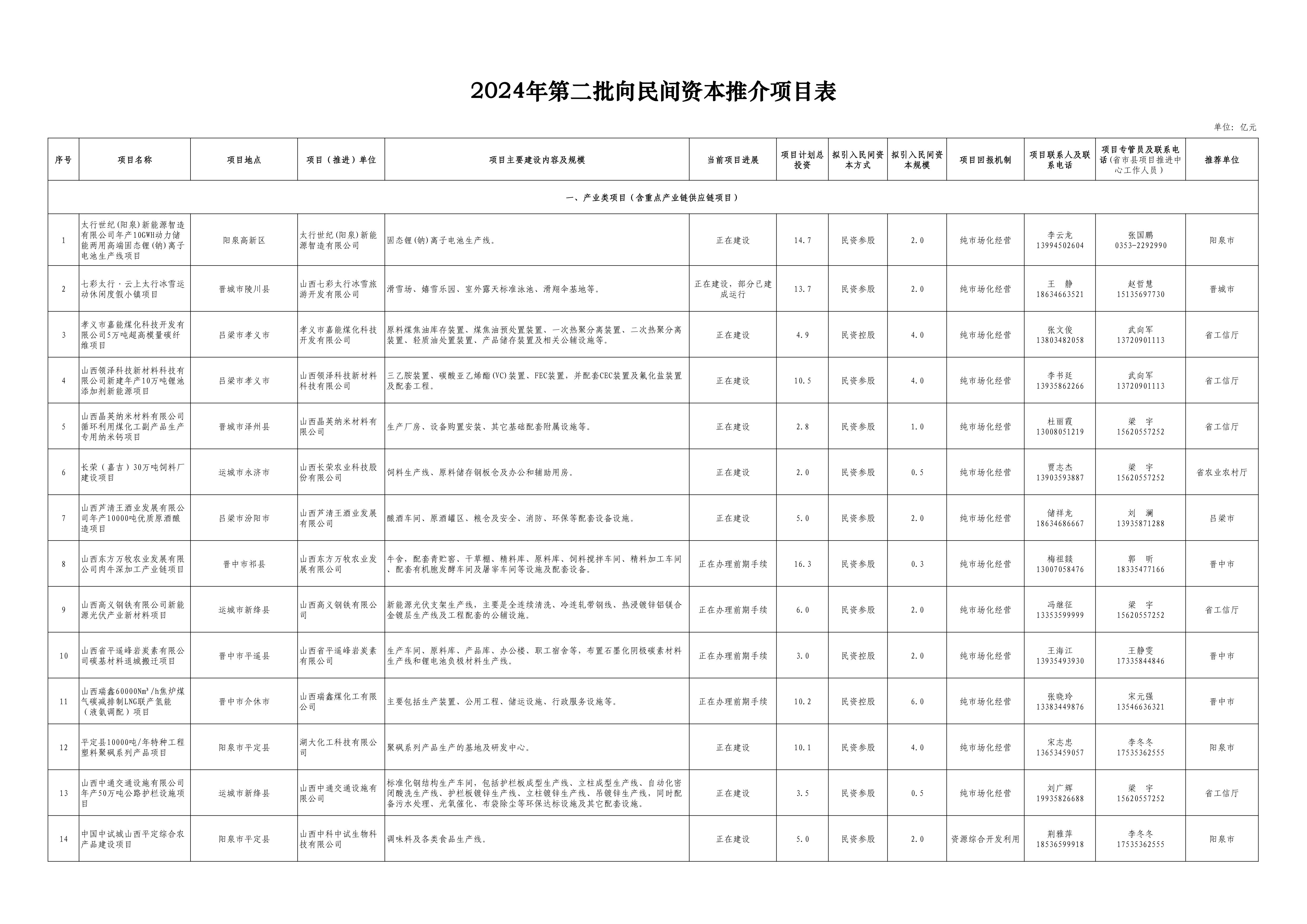 本報太原6月28日訊(記者王蕾)日前,省發(fā)展改革委發(fā)布了2024年第二批向民間資本推介項目名單,共60個,計劃總投資533.3億元,計劃引入民間資本257億元。