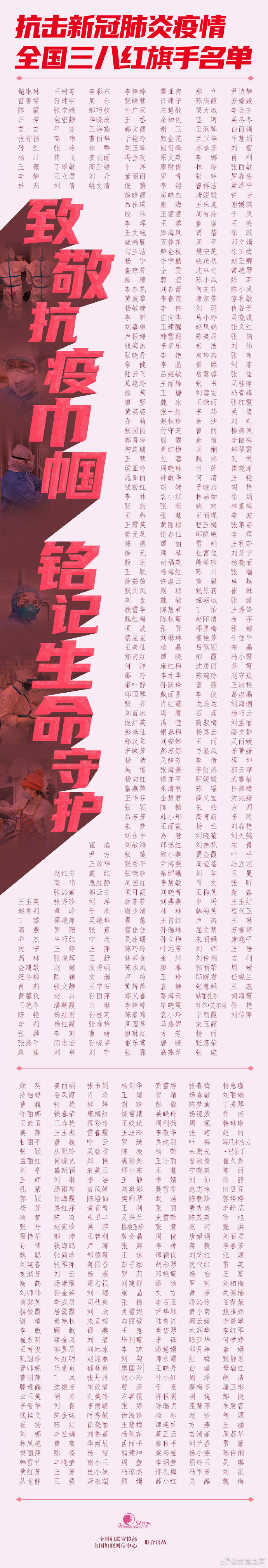 21名個(gè)人4個(gè)集體榮獲抗擊新冠肺炎疫情全國三八紅旗手(集體)稱號