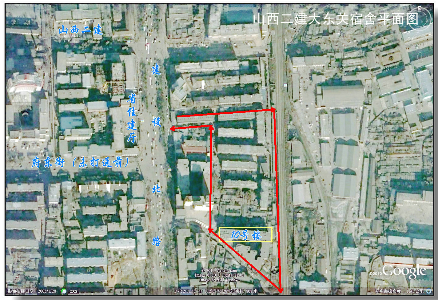 下午得空,查看2005年至2012年在協(xié)會時保存的文檔,看到了這幅在2005年1月20日,用谷歌地球下載的衛(wèi)星圖片。
