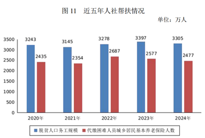 人力資源社會保障部門認(rèn)真貫徹黨中央、國務(wù)院決策部署,不斷加大人社幫扶力度,持續(xù)鞏固脫貧攻堅(jiān)成果、助力推進(jìn)鄉(xiāng)村振興。2024 年末脫貧人口務(wù)工規(guī)模達(dá)到 3305 萬人。及時為 2477 萬低保對象、特困人員、返貧致貧人口、重度殘疾人等困難人員代繳城鄉(xiāng)居民養(yǎng)老保險費(fèi)。選派 2.2 萬名高校畢業(yè)生到基層從事支農(nóng)和幫扶鄉(xiāng)村振興服務(wù)。開展專技人才服務(wù)鄉(xiāng)村活動,組織實(shí)施 60 個專家服務(wù)基層示范團(tuán)項(xiàng)目。