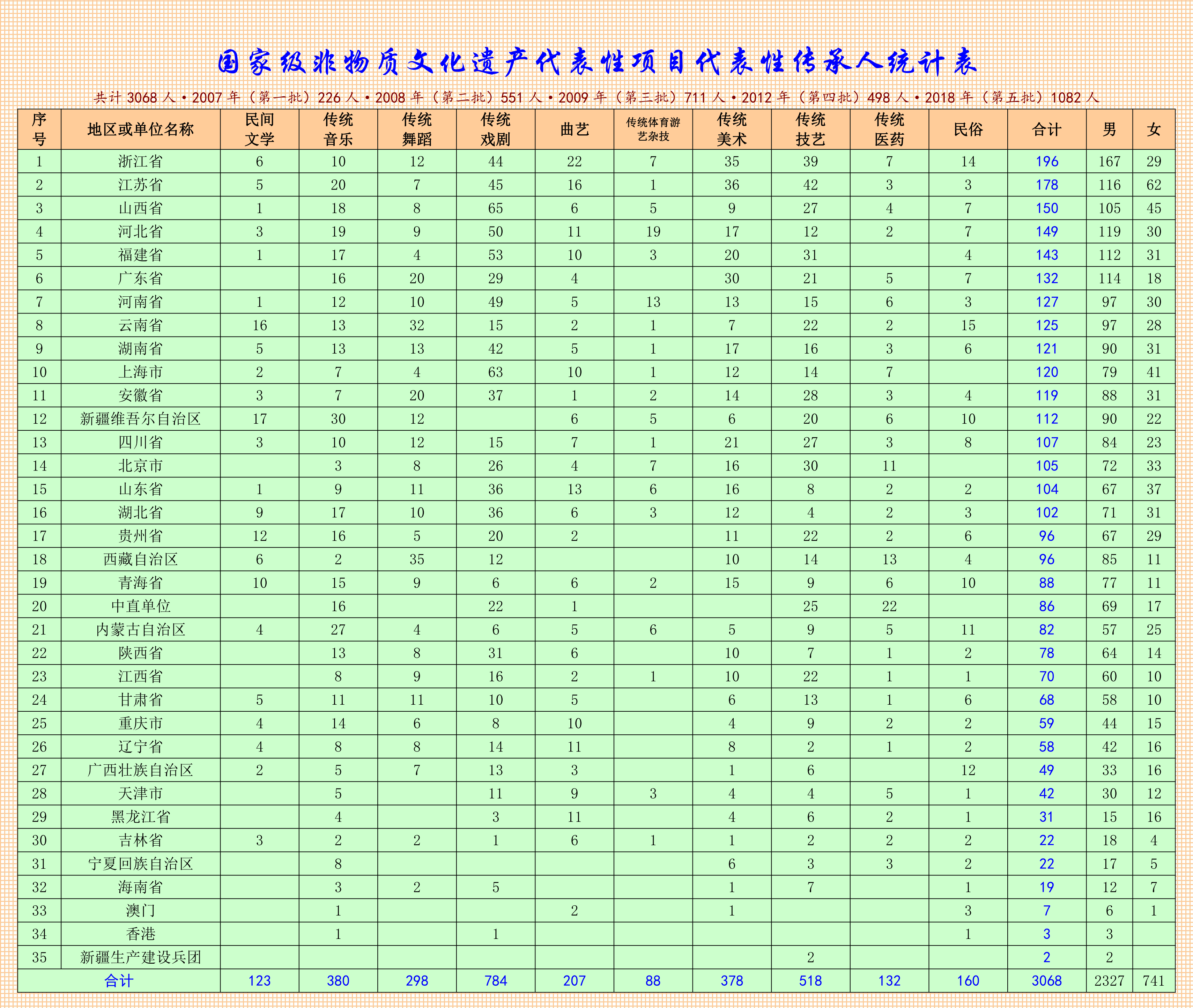 國(guó)家級(jí)非物質(zhì)文化遺產(chǎn)代表性項(xiàng)目代表性傳承人名錄