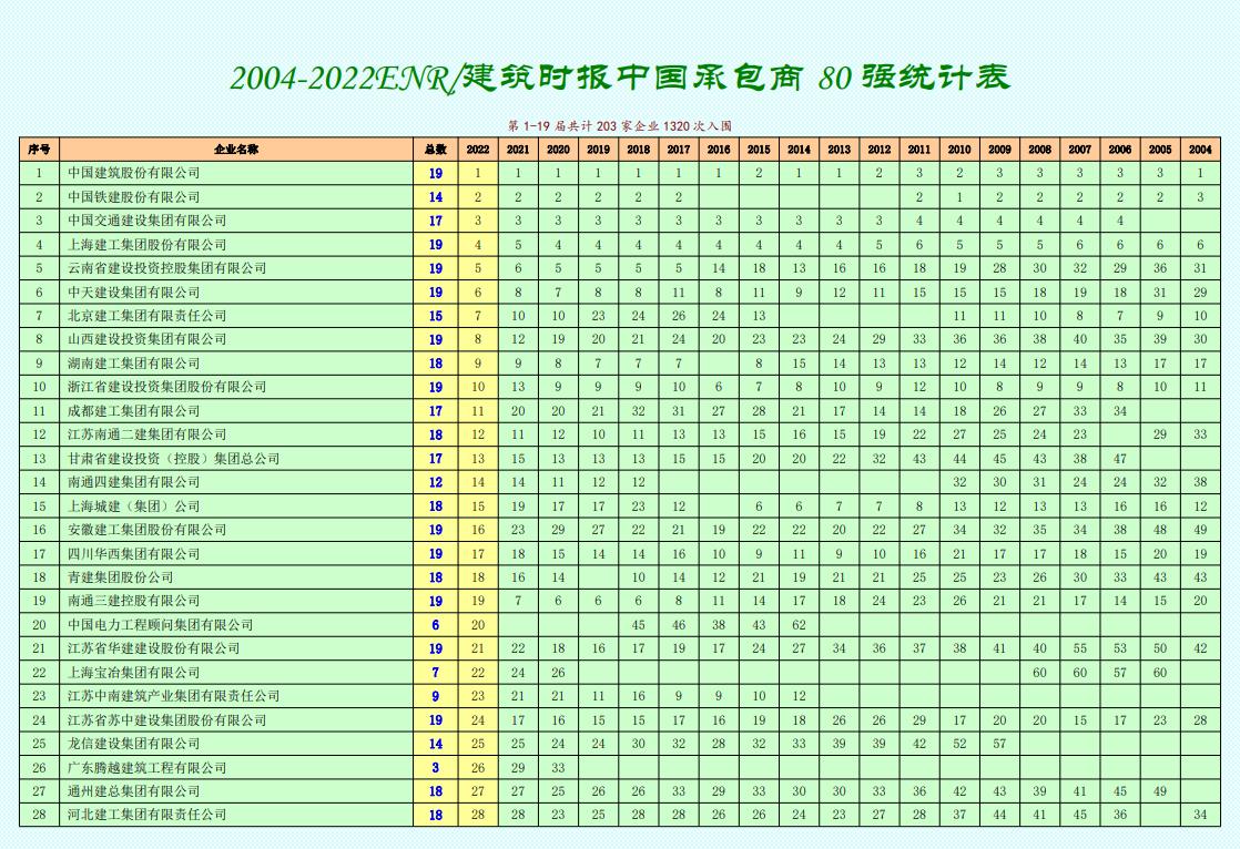 2004-2022ENR/建筑時報(bào)中國承包商 80 強(qiáng)
