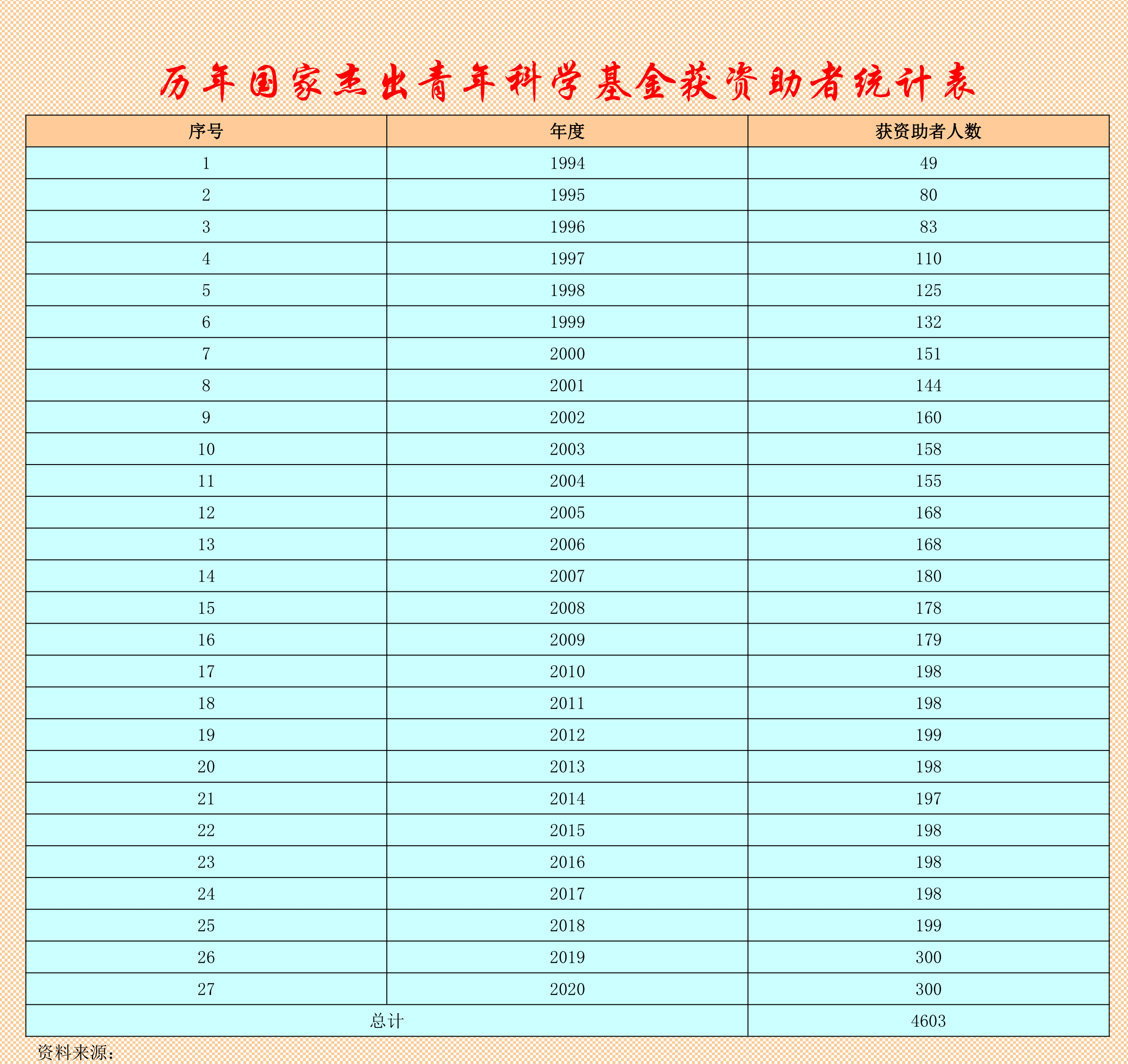 1994-2020年國家杰出青年科學基金項目資助名單