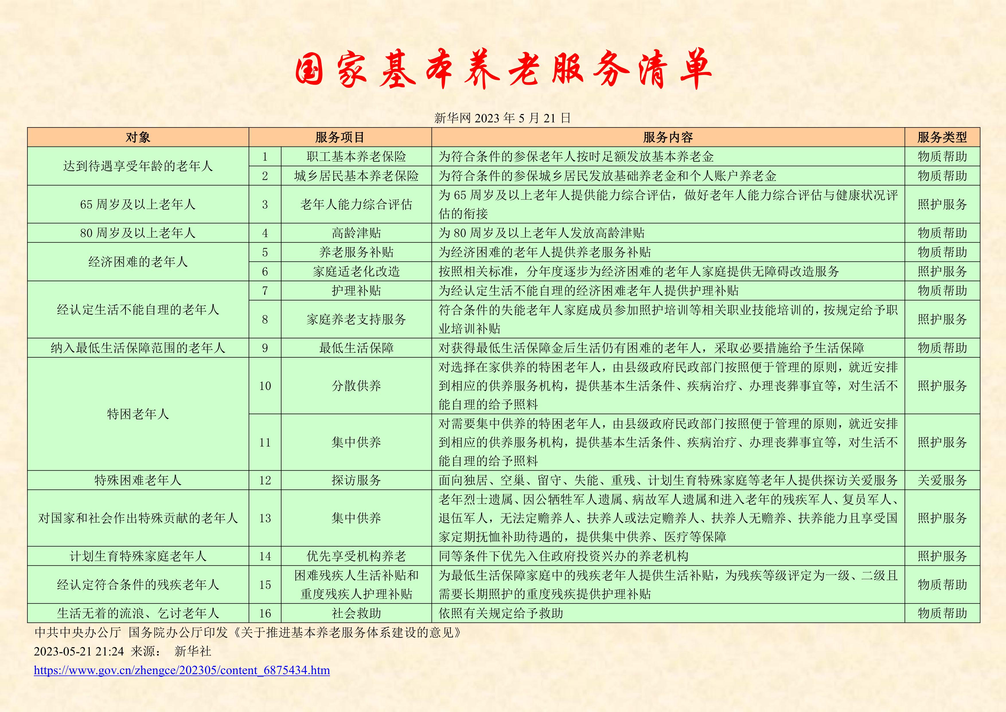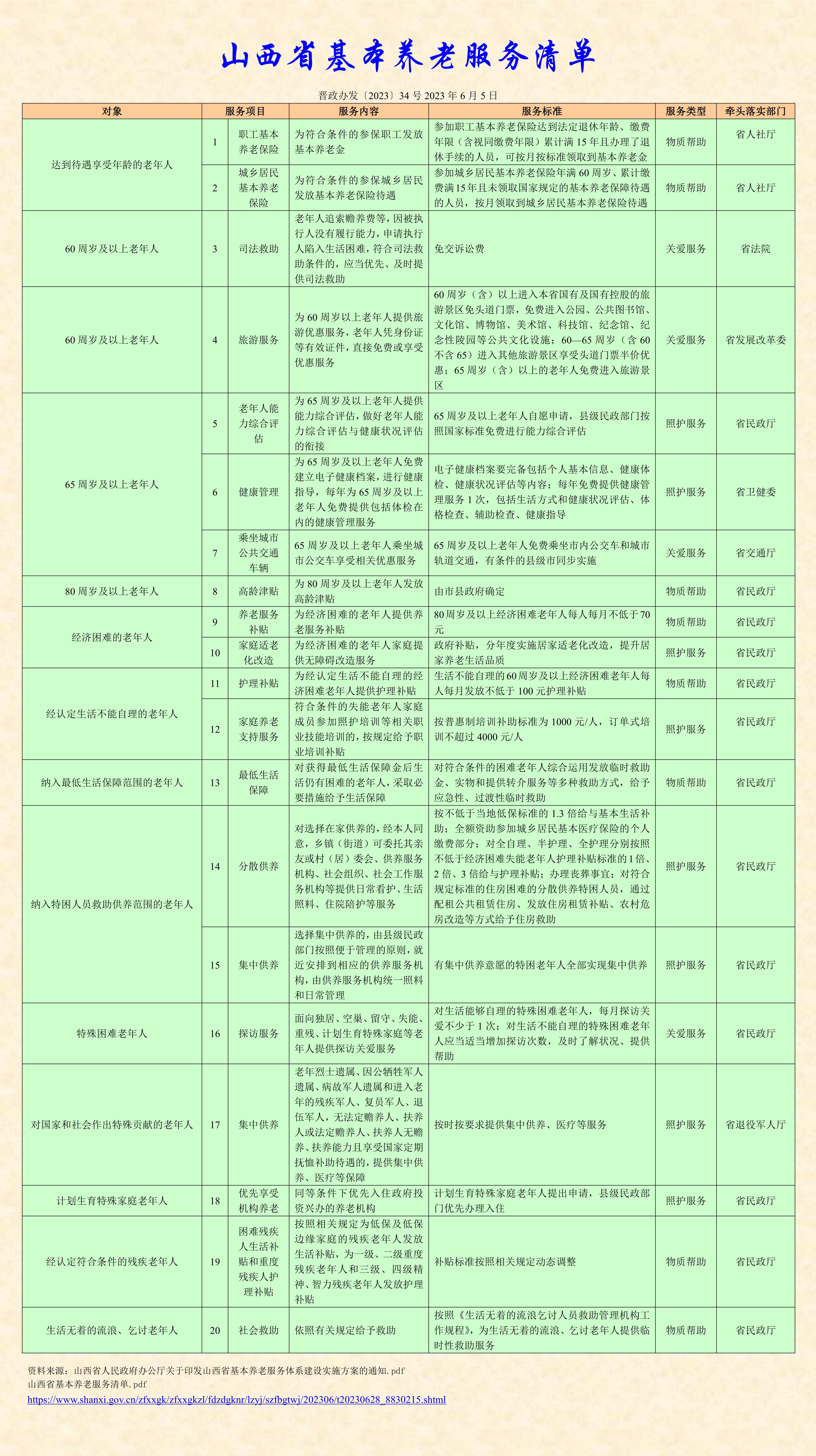 國(guó)家和山西省基本養(yǎng)老服務(wù)清單