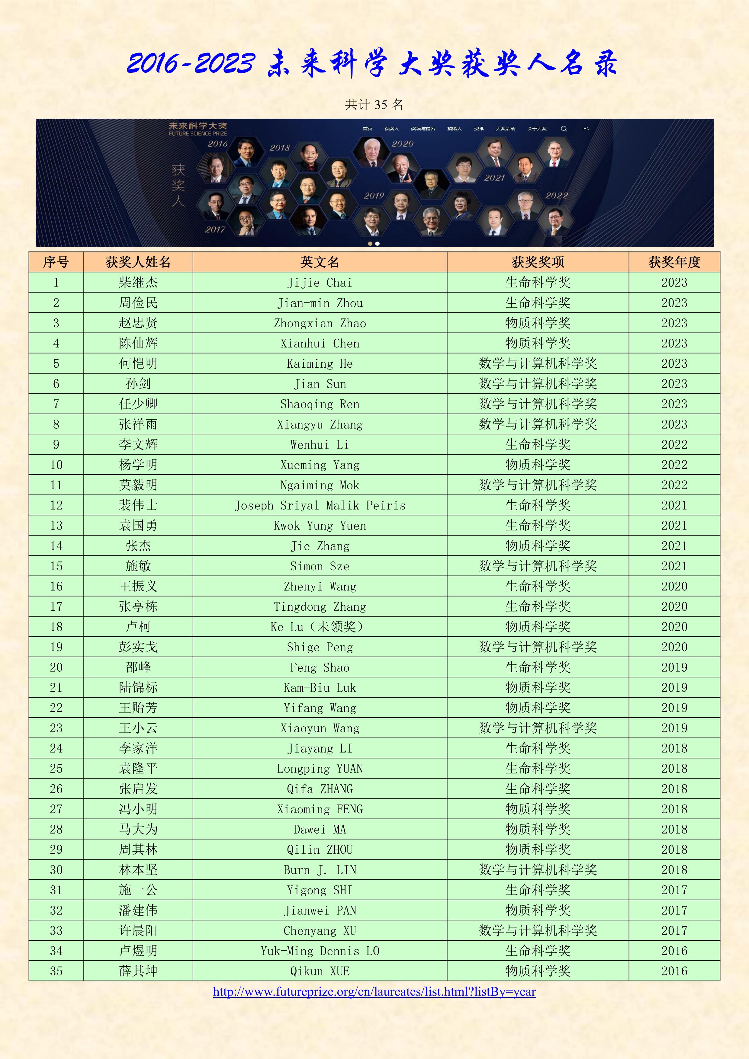 2016-2023未來(lái)科學(xué)大獎(jiǎng)獲獎(jiǎng)人名錄