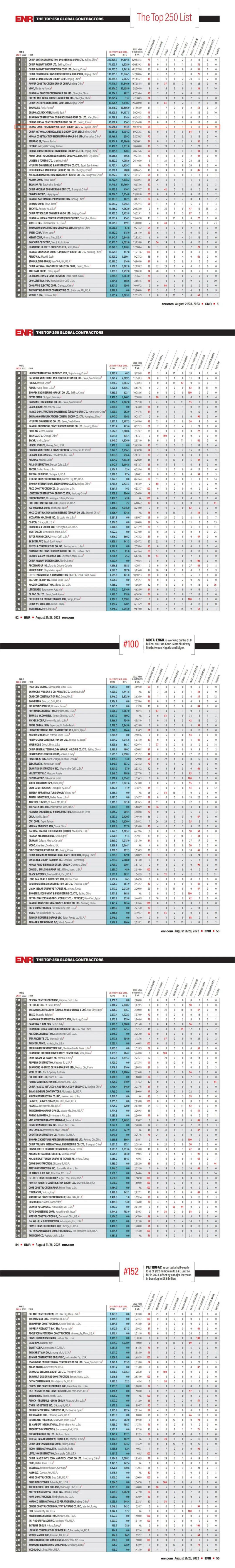 2023年8月23日,美國《工程新聞記錄》(ENR)雜志發(fā)布了2023年度全球承包商250強排行榜,中國內(nèi)地共有61家企業(yè)入榜,總體進榜數(shù)量比上一年度減少了2家企業(yè)。