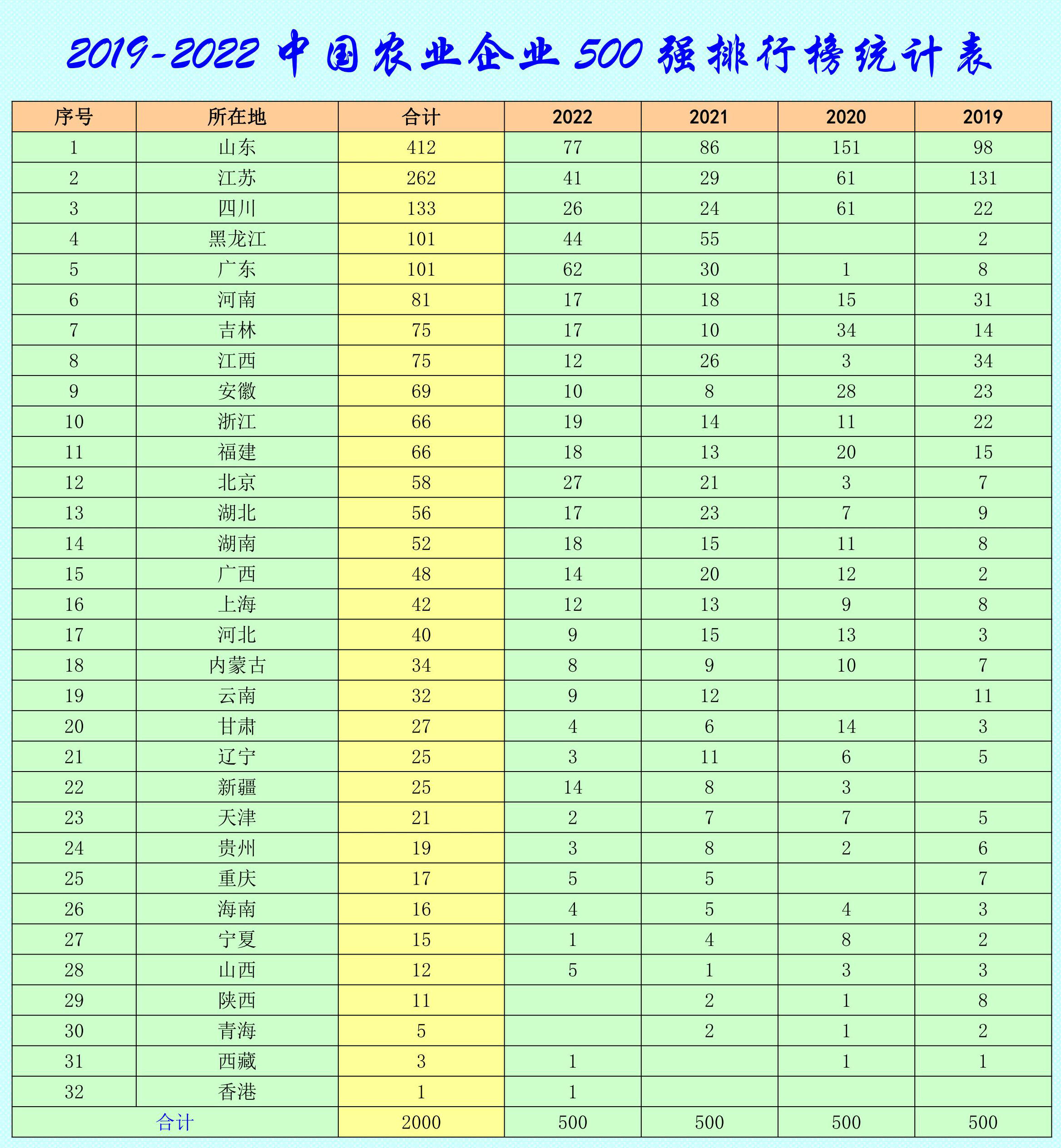 2019-2022中國(guó)農(nóng)業(yè)企業(yè)500強(qiáng)排行榜