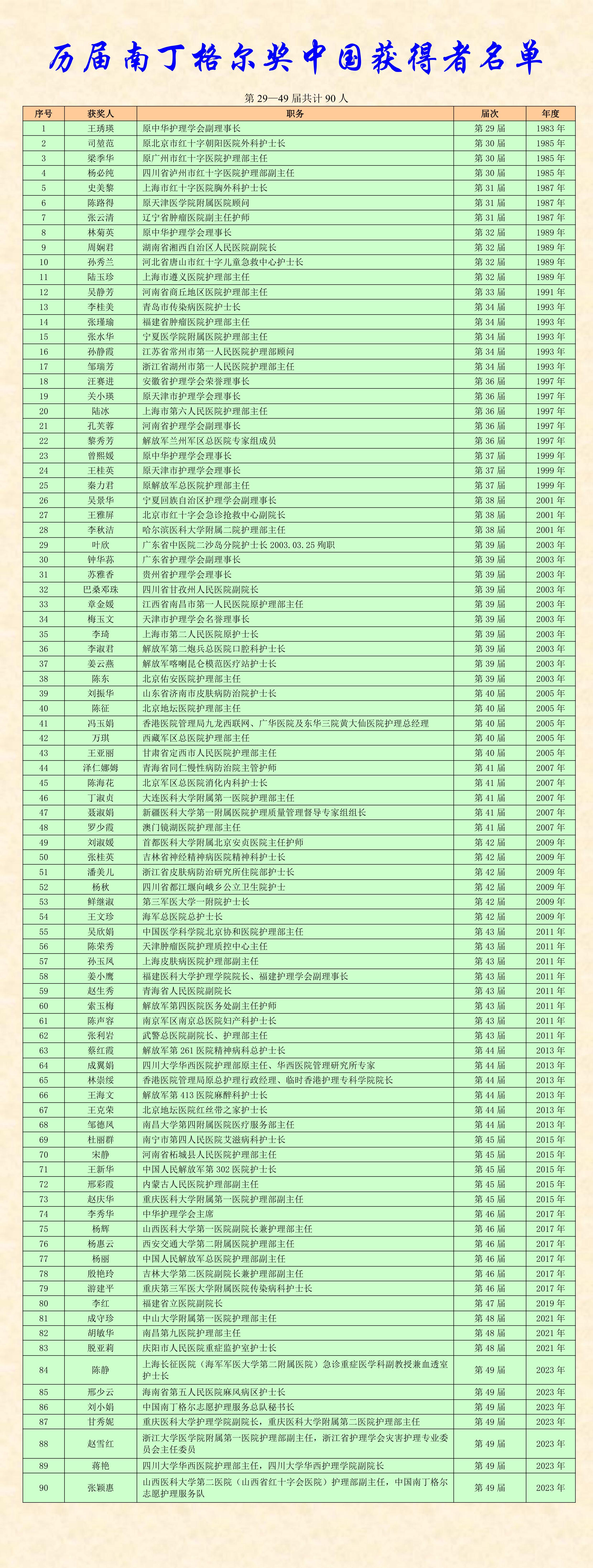 歷屆南丁格爾獎(jiǎng)中國獲得者名單