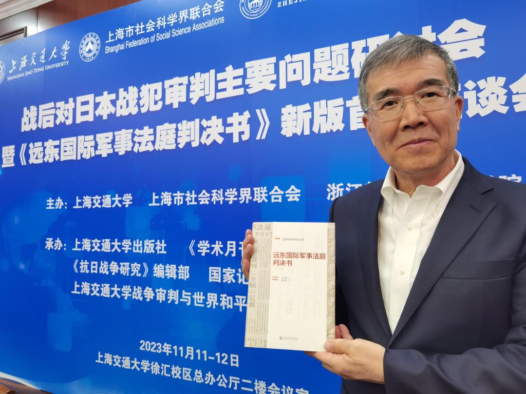 新版《遠東國際軍事法庭判決書》由上海交通大學出版社出版。東京審判中國法官梅汝璈之女、法學博士梅小侃擔任此書審校。(記者吳宇)