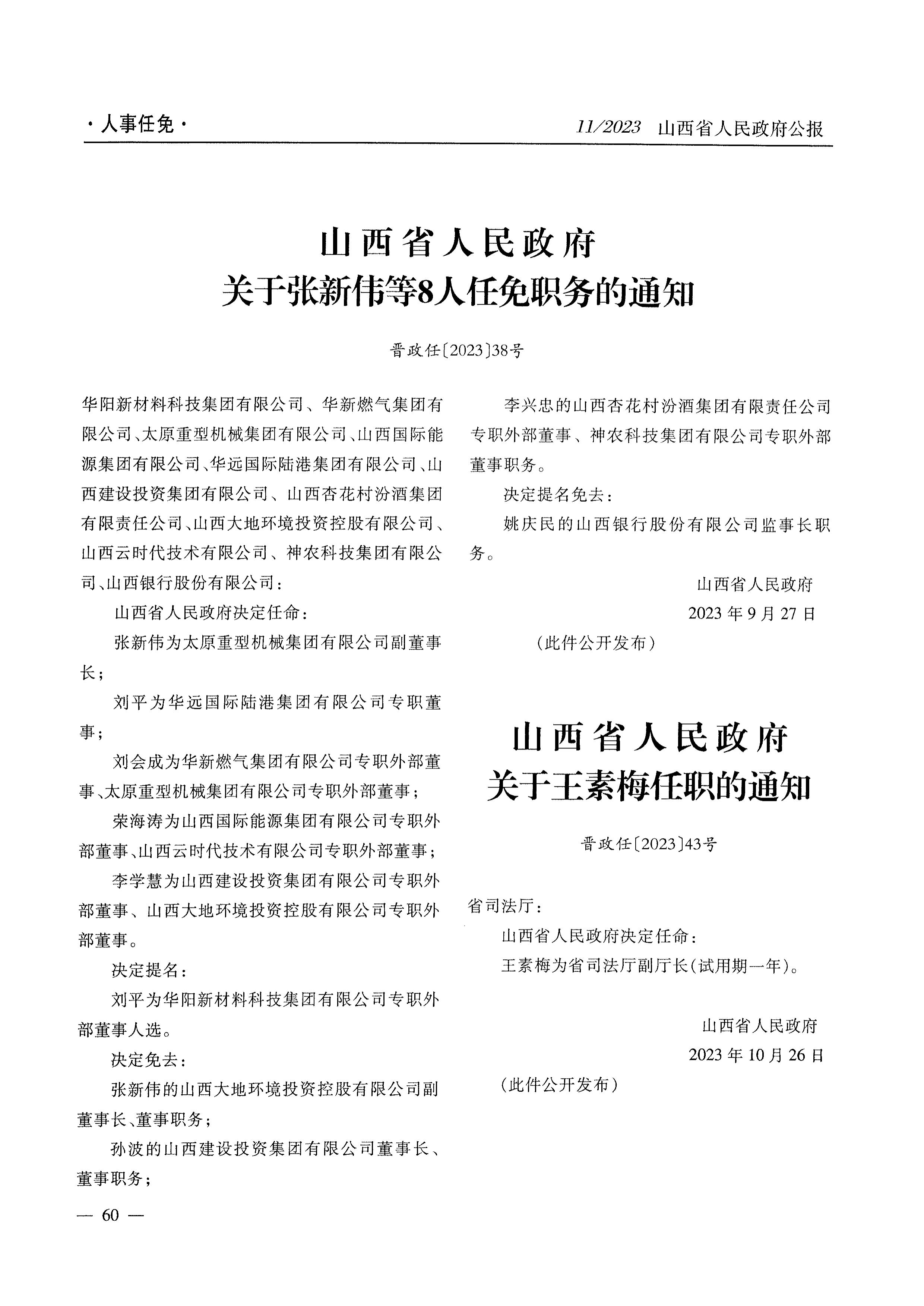 張新偉的山西大地環(huán)境投資控股有限公司副董事長、董事職務;