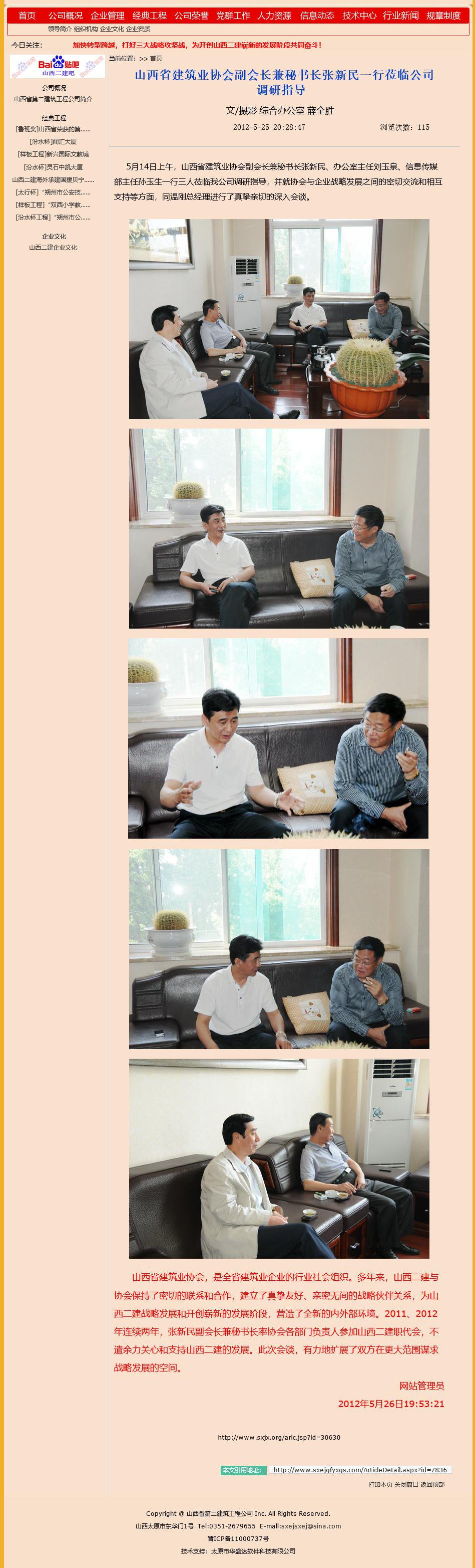 山西省建筑業(yè)協(xié)會副會長兼秘書長張新民一行 蒞臨公司調(diào)研指導