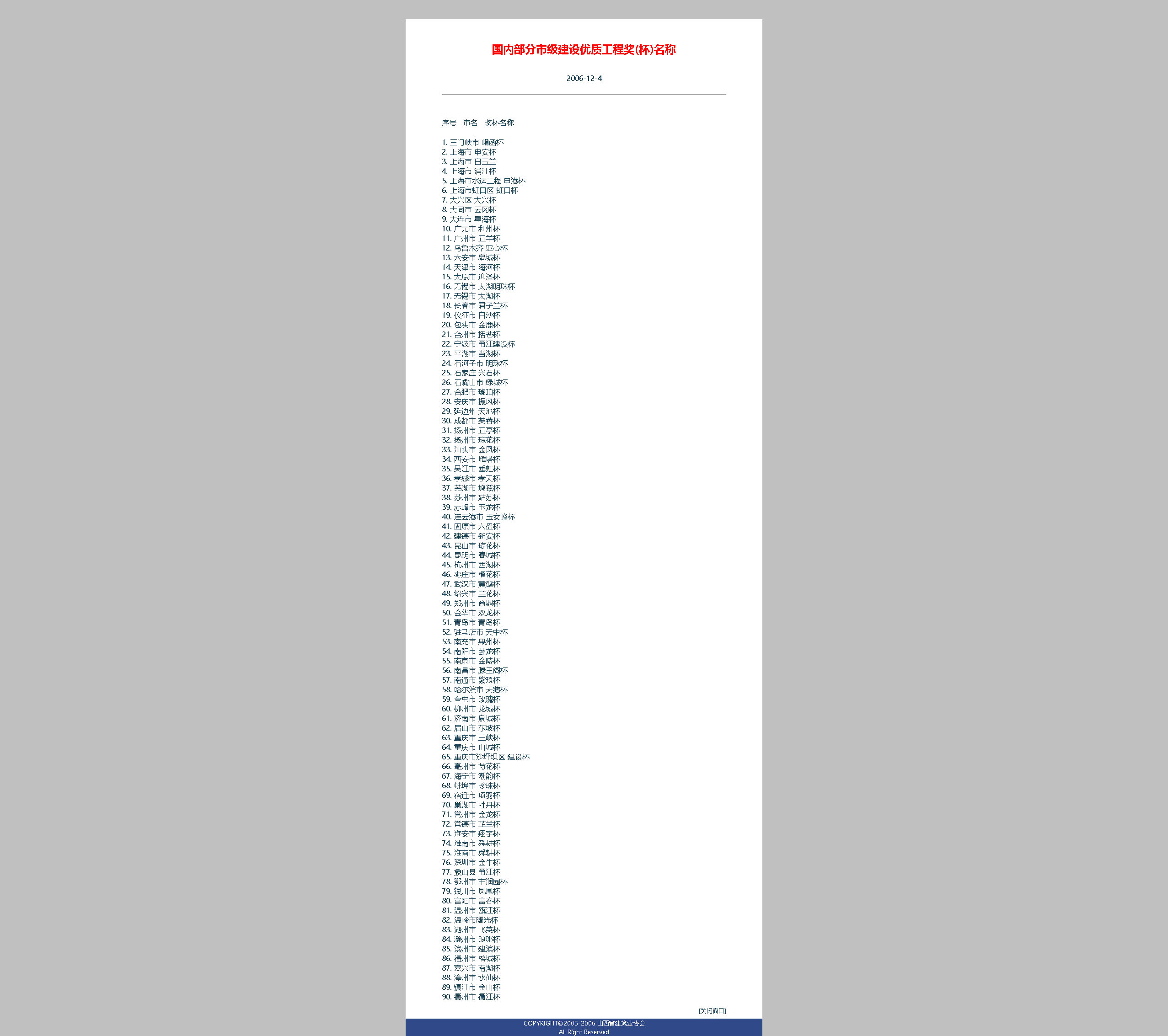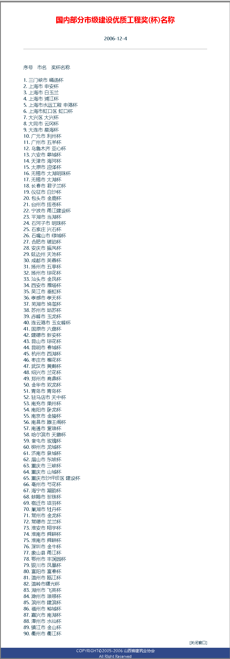 這是十七年前,在山西省建筑業(yè)協(xié)會管理網(wǎng)站時,收集的全國各地建筑業(yè)評獎名稱,對于了解我們這個行業(yè)和社會的重視程度,管中窺豹,可見一斑。做企業(yè),首先要知道和懂得瞄準戰(zhàn)略目標,有的放矢,正中靶心。