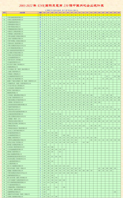2003-2022年ENR國(guó)際承包商250強(qiáng)中國(guó)內(nèi)地企業(yè)統(tǒng)計(jì)表