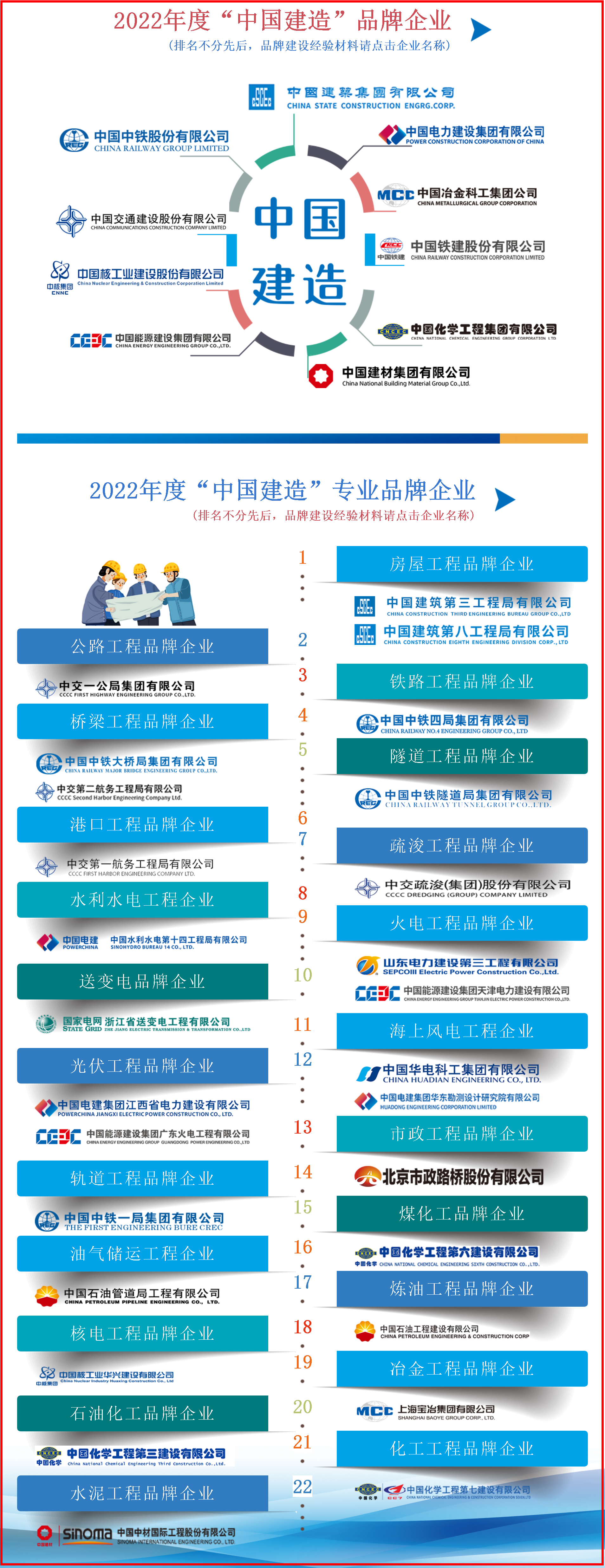 中國(guó)施工企業(yè)管理協(xié)會(huì)深入踐行新時(shí)代品牌強(qiáng)國(guó)戰(zhàn)略,在第6個(gè)中國(guó)品牌日到來(lái)之際,組織開(kāi)展了一系列工程建設(shè)企業(yè)品牌建設(shè)宣傳活動(dòng)。5月5日,專(zhuān)門(mén)下發(fā)《關(guān)于加強(qiáng)工程建設(shè)企業(yè)品牌建設(shè)的指導(dǎo)意見(jiàn)》,5月9日,下發(fā)《關(guān)于開(kāi)展工程建設(shè)企業(yè)品牌建設(shè)宣傳活動(dòng)的通知》,著力提升工程建設(shè)企業(yè)品牌建設(shè)能力。 協(xié)會(huì)結(jié)合行業(yè)實(shí)際,重點(diǎn)在房屋工程、公路工程、鐵路工程、橋梁工程、隧道工程、港口工程、疏浚工程、水利水電工程、火電工程、送變電工程、海上風(fēng)電工程、光伏工程、市政工程、軌道工程、煤化工工程、油氣儲(chǔ)運(yùn)工程、煉油工程、核電工程、冶金工程、石油化工工程、化工工程、水泥工程等領(lǐng)域,遴選一批在品牌建設(shè)上具有代表性、先進(jìn)性、引領(lǐng)性的專(zhuān)業(yè)品牌企業(yè),將其經(jīng)驗(yàn)做法在協(xié)會(huì)官網(wǎng)設(shè)置“中國(guó)建造品牌宣傳”專(zhuān)欄刊發(fā),供全行業(yè)學(xué)習(xí)借鑒。