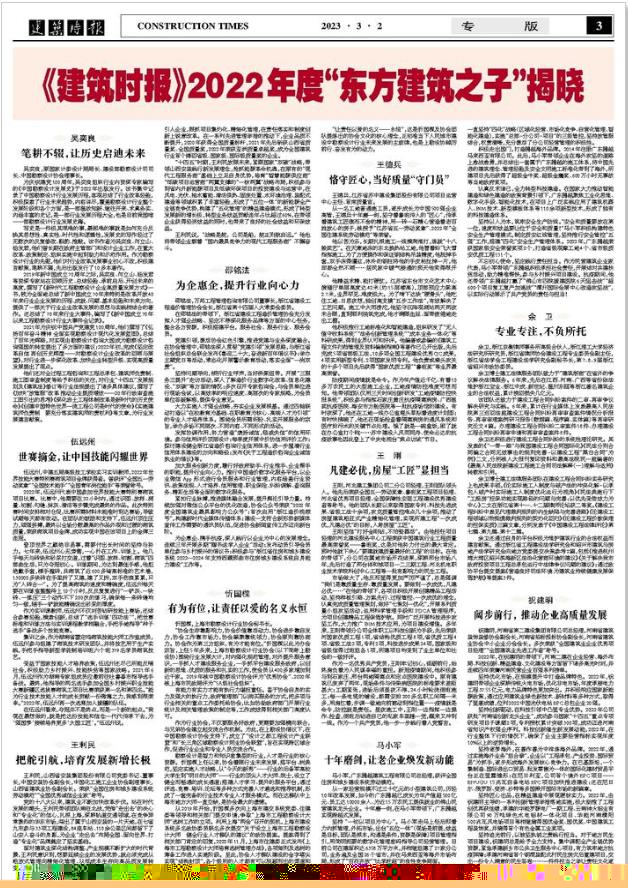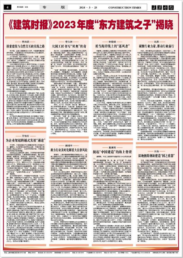 【行業(yè)動態(tài)】《建筑時報》2023年度“東方建筑之子”揭曉