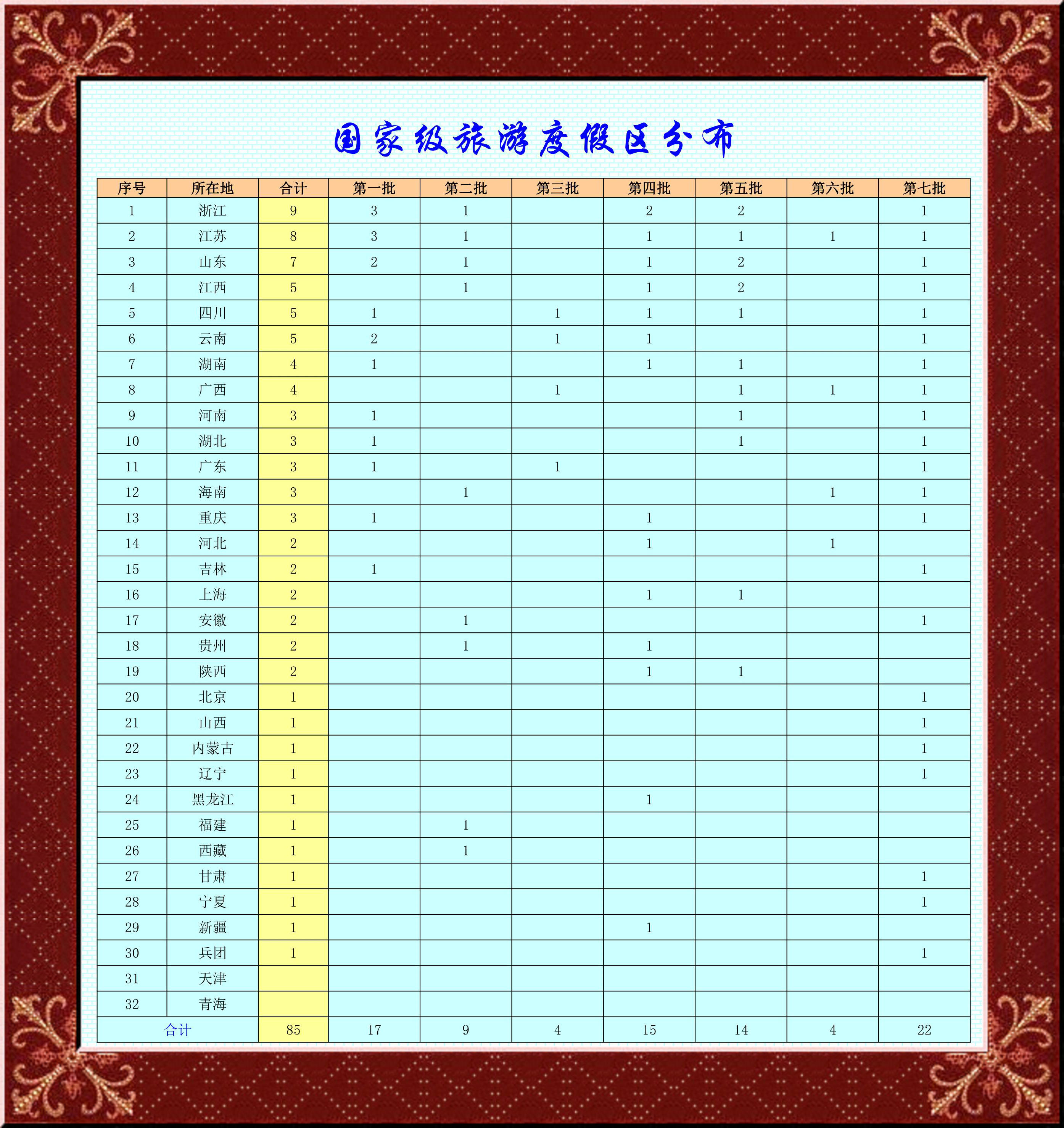 總序 度假區(qū)名稱 所在地 批次 年度 序號
