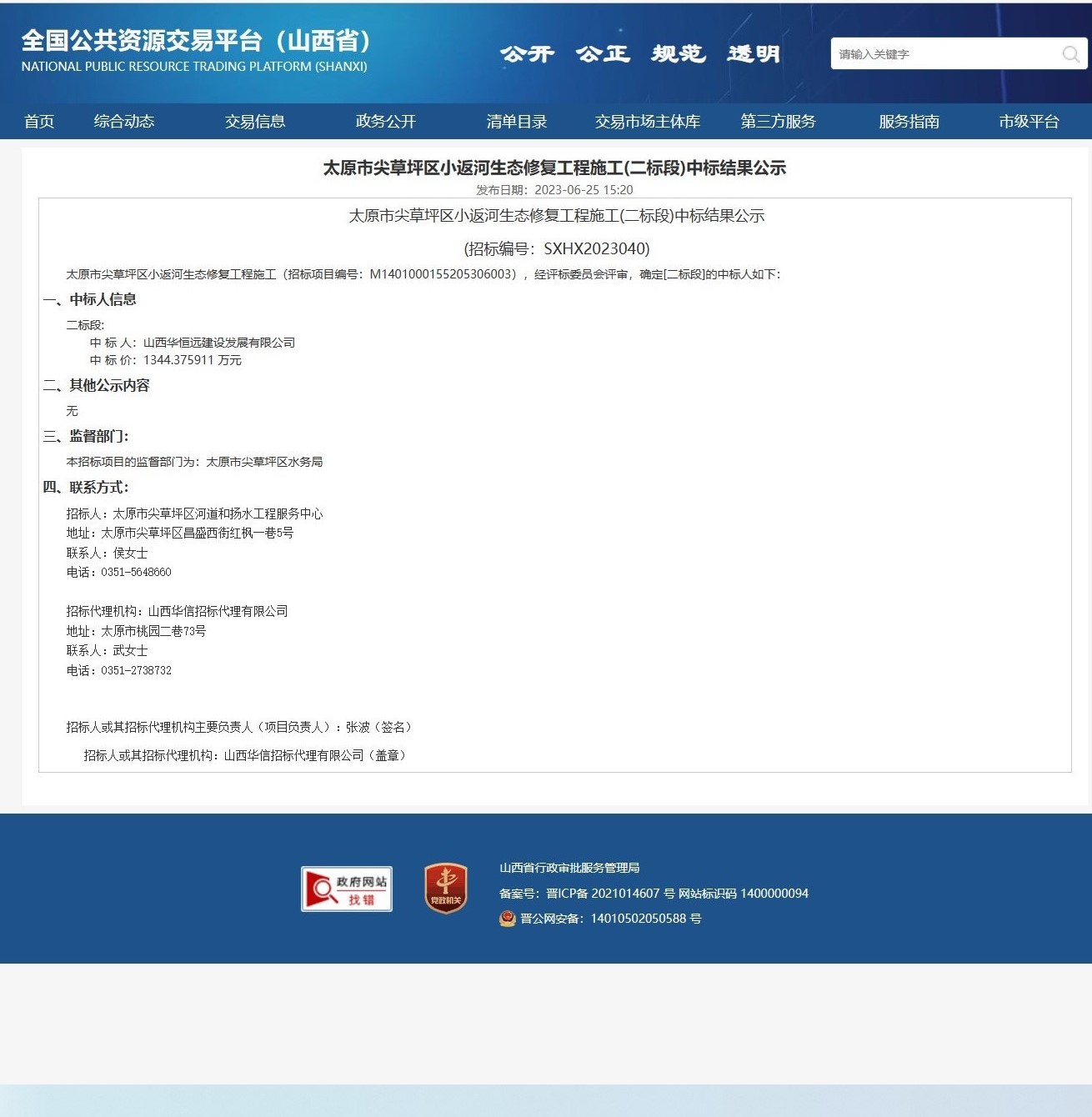 小返河生態(tài)修復(fù)工程施工(二標(biāo)段)中標(biāo)1344.37萬(wàn)元