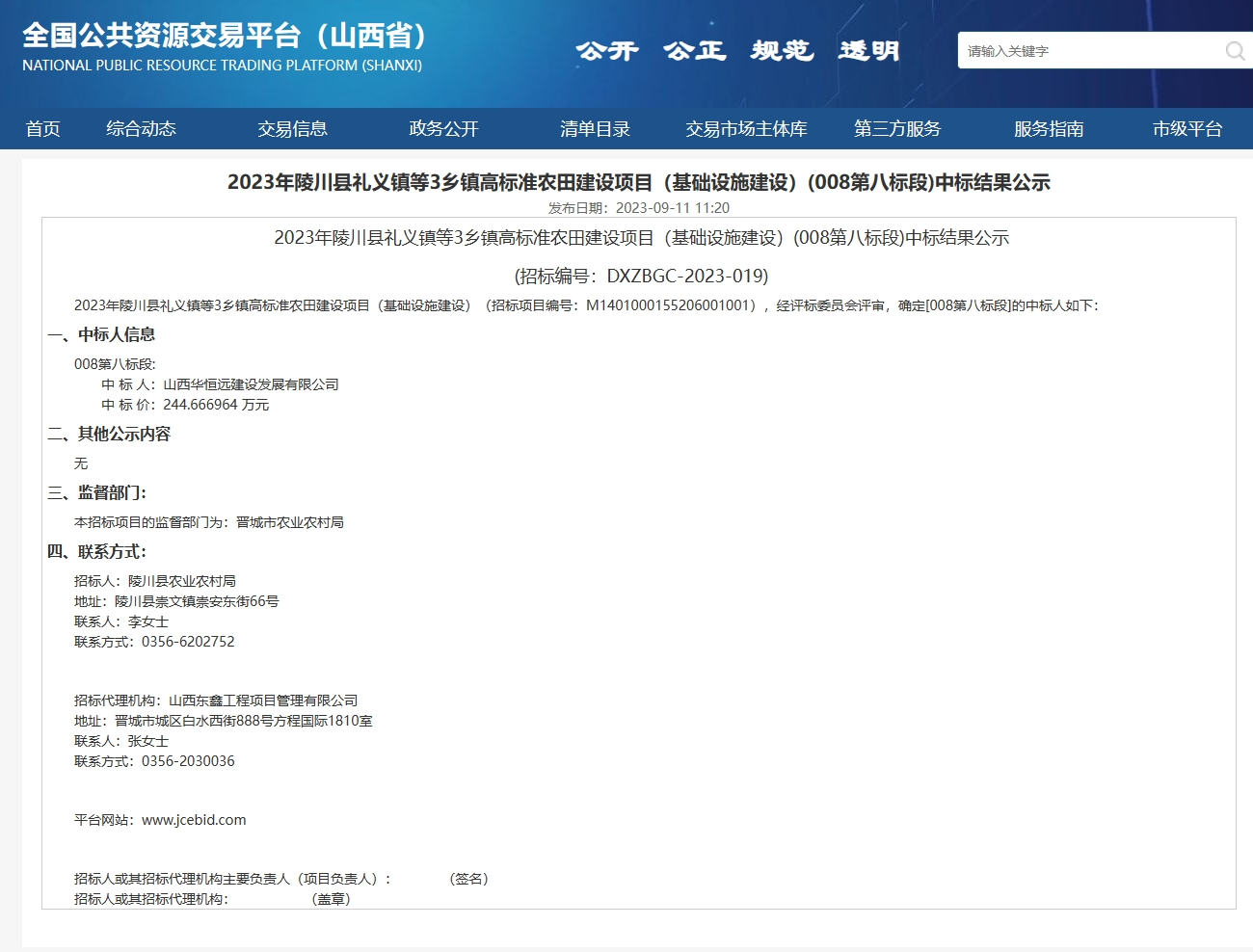 2023年陵川縣禮義鎮(zhèn)等3鄉(xiāng)鎮(zhèn)高標準農(nóng)田建設(shè)項目(基礎(chǔ)設(shè)施建設(shè))8標段
