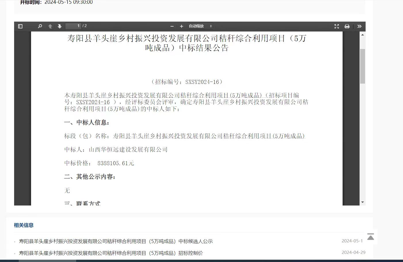 2024年壽陽縣羊頭崖鄉(xiāng)村振興投資發(fā)展有限公司秸稈綜合利用項日