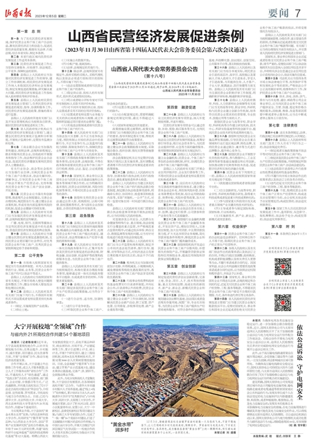 《山西省民營經(jīng)濟(jì)發(fā)展促進(jìn)條例》已由山西省第十四屆人民代表大會常務(wù)委員會第六次會議于2023年11月30日通過,現(xiàn)予公布,自2024年1月1日起施行。