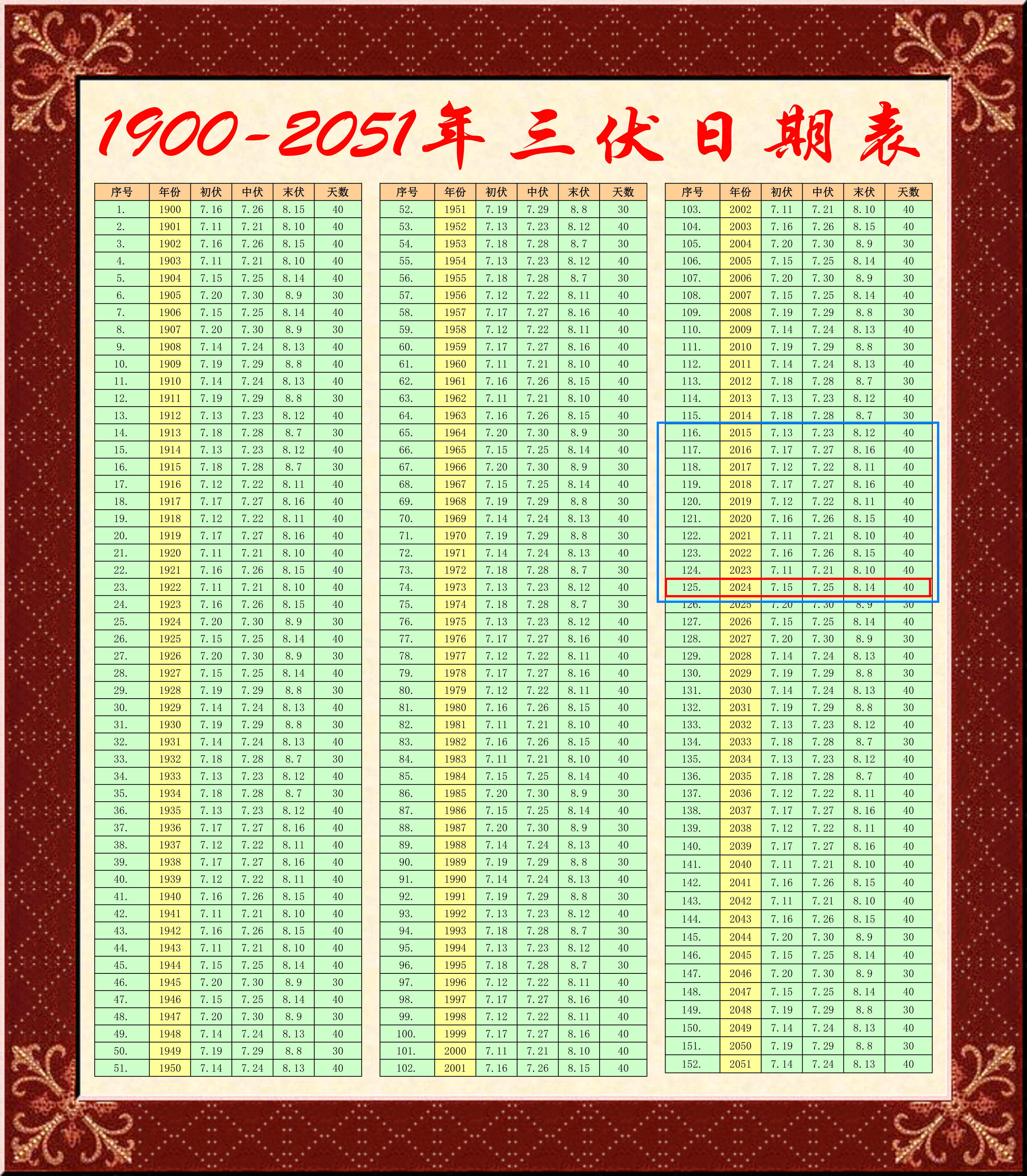 我國(guó)傳統(tǒng)歷法規(guī)定,從夏至日開始數(shù)起,數(shù)到第三個(gè)“庚日”就進(jìn)入初伏。初伏和末伏固定都是10天,中伏則不固定,有時(shí)是10天,有時(shí)是20天。