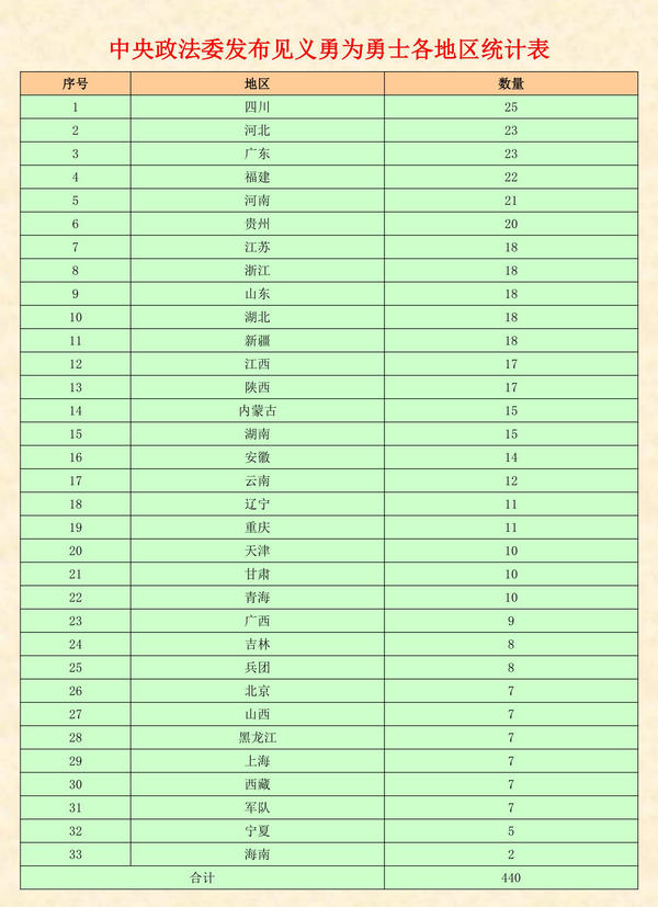 山西省歷次入列中央政法委表彰見義勇為勇士