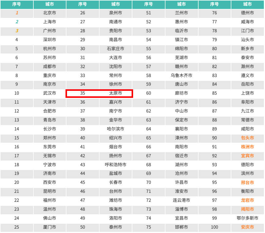 評(píng)估結(jié)果顯示,北京、上海、廣州、深圳、杭州、蘇州、成都、重慶、南京、武漢成為2024數(shù)字經(jīng)濟(jì)百?gòu)?qiáng)市中的前十位。包頭、安慶、宜賓、株洲、龍巖、邢臺(tái)、揭陽(yáng)七個(gè)城市新晉數(shù)字經(jīng)濟(jì)百?gòu)?qiáng)市。
