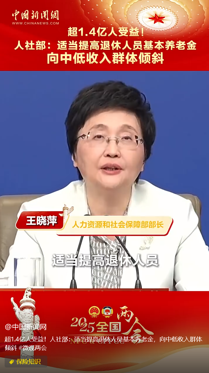 【綜合信息】超1.4億人受益!人社部:適當提高退休人員基本養(yǎng)老金 向中低收入群體傾斜
