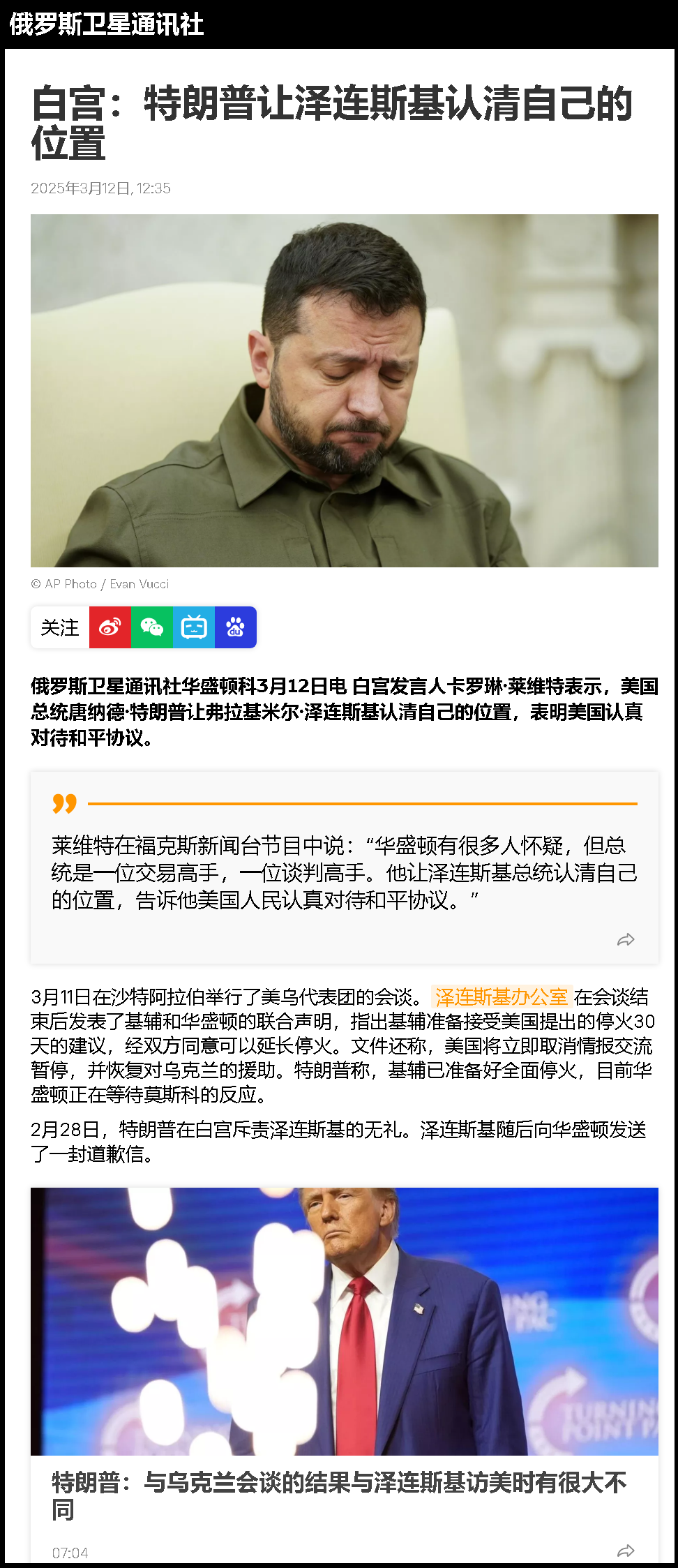 據(jù)美國媒體報(bào)道,美國總統(tǒng)特朗普當(dāng)天在白宮外向媒體表示,希望俄羅斯也能接受30天?;鹛嶙h,他要就此事與俄羅斯總統(tǒng)普京“談?wù)劇?。?dāng)被問及是否會(huì)邀請(qǐng)澤連斯基重返白宮時(shí),特朗普回答說:“當(dāng)然,絕對(duì)會(huì)?!?