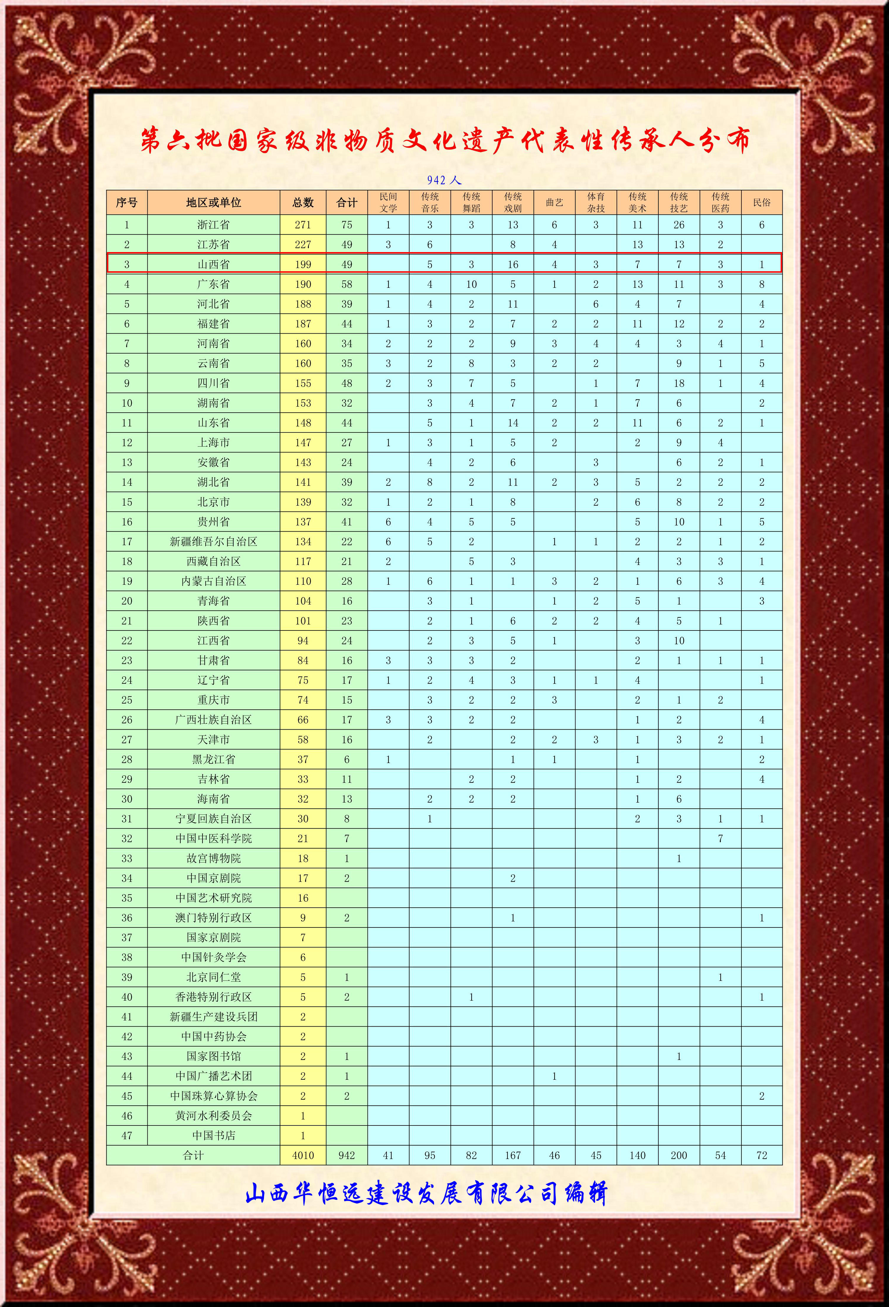 3月17日,文化和旅游部經(jīng)推薦申報、材料復核、專家初評、社會公示、評審委員會審議等程序, 確定了第六批國家級非物質(zhì)文化遺產(chǎn)代表性傳承人名單(942人),現(xiàn)予以公布。