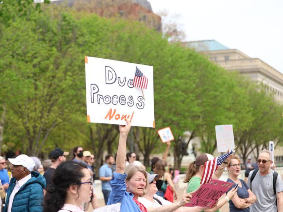 當天,抗議風暴再次席卷全美,首都華盛頓、紐約、舊金山、波士頓等多個城市的民眾走上街頭,譴責特朗普政府驅逐移民、政府裁員、加征關稅等多項政策侵犯公民權益以及違反憲法。