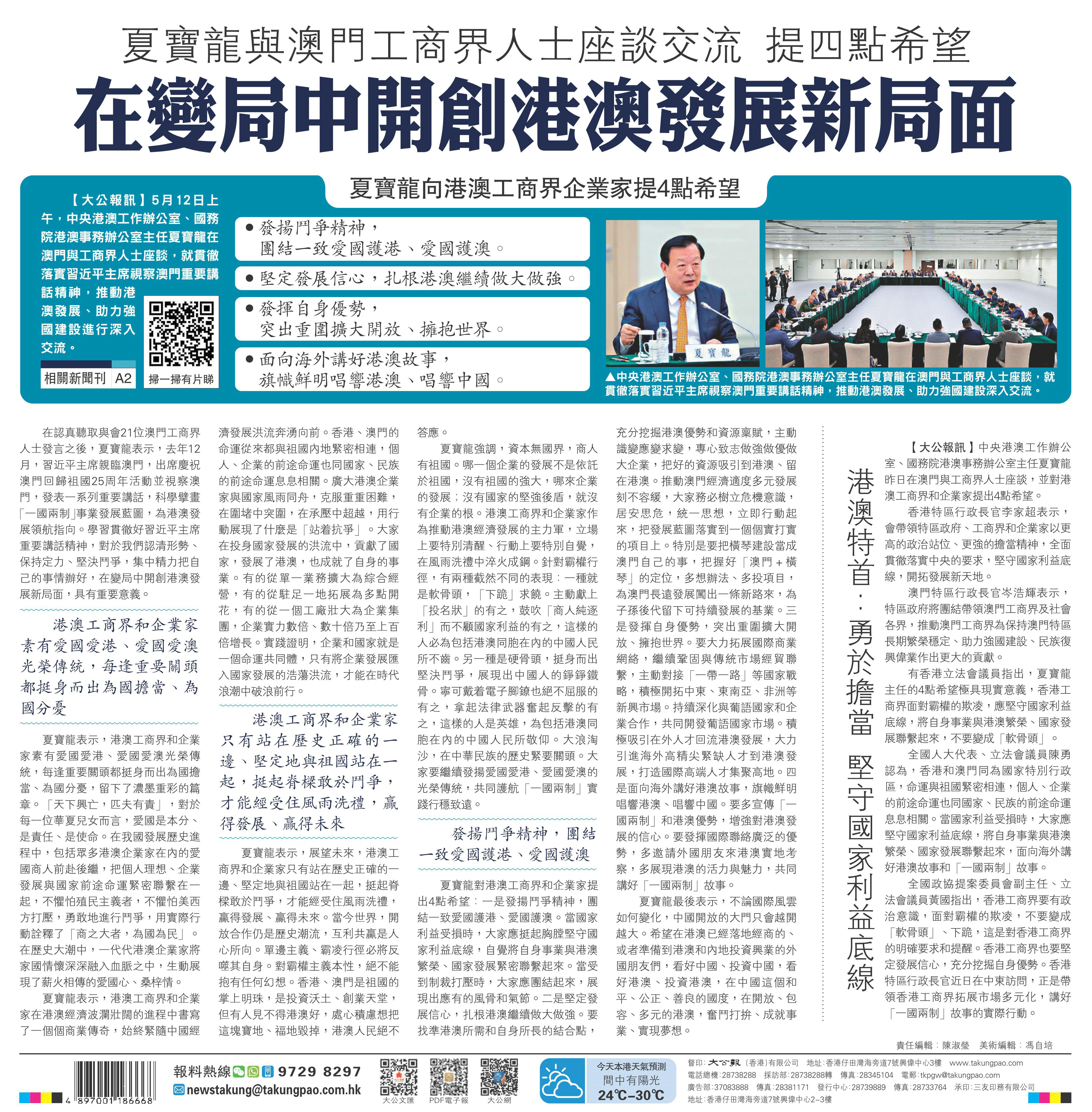 夏寶龍強(qiáng)調(diào),資本無國界,商人有祖國。哪一個(gè)企業(yè)的發(fā)展不是依托于祖國,沒有祖國的強(qiáng)大,哪來企業(yè)的發(fā)展;沒有國家的堅(jiān)強(qiáng)后盾,就沒有企業(yè)的根。港澳工商界和企業(yè)家作為推動(dòng)港澳經(jīng)濟(jì)發(fā)展的主力軍,立場上要特別清醒、行動(dòng)上要特別自覺,在風(fēng)雨洗禮中淬火成鋼。針對霸權(quán)行徑,有兩種截然不同的表現(xiàn):一種就是軟骨頭,「下跪」求饒。主動(dòng)獻(xiàn)上「投名狀」的有之,鼓吹「商人純逐利」而不顧國家利益的有之,這樣的人必為包括港澳同胞在內(nèi)的中國人民所不齒。另一種是硬骨頭,挺身而出堅(jiān)決斗爭,展現(xiàn)出中國人的錚錚鐵骨。寧可戴著電子腳鐐也絕不屈服的有之,拿起法律武器奮起反擊的有之,這樣的人是英雄,為包括港澳同胞在內(nèi)的中國人民所敬仰。大浪淘沙,在中華民族的歷史緊要關(guān)頭。大家要繼續(xù)發(fā)揚(yáng)愛國愛港、愛國愛澳的光榮傳統(tǒng),共同護(hù)航「一國兩制」實(shí)踐行穩(wěn)致遠(yuǎn)。