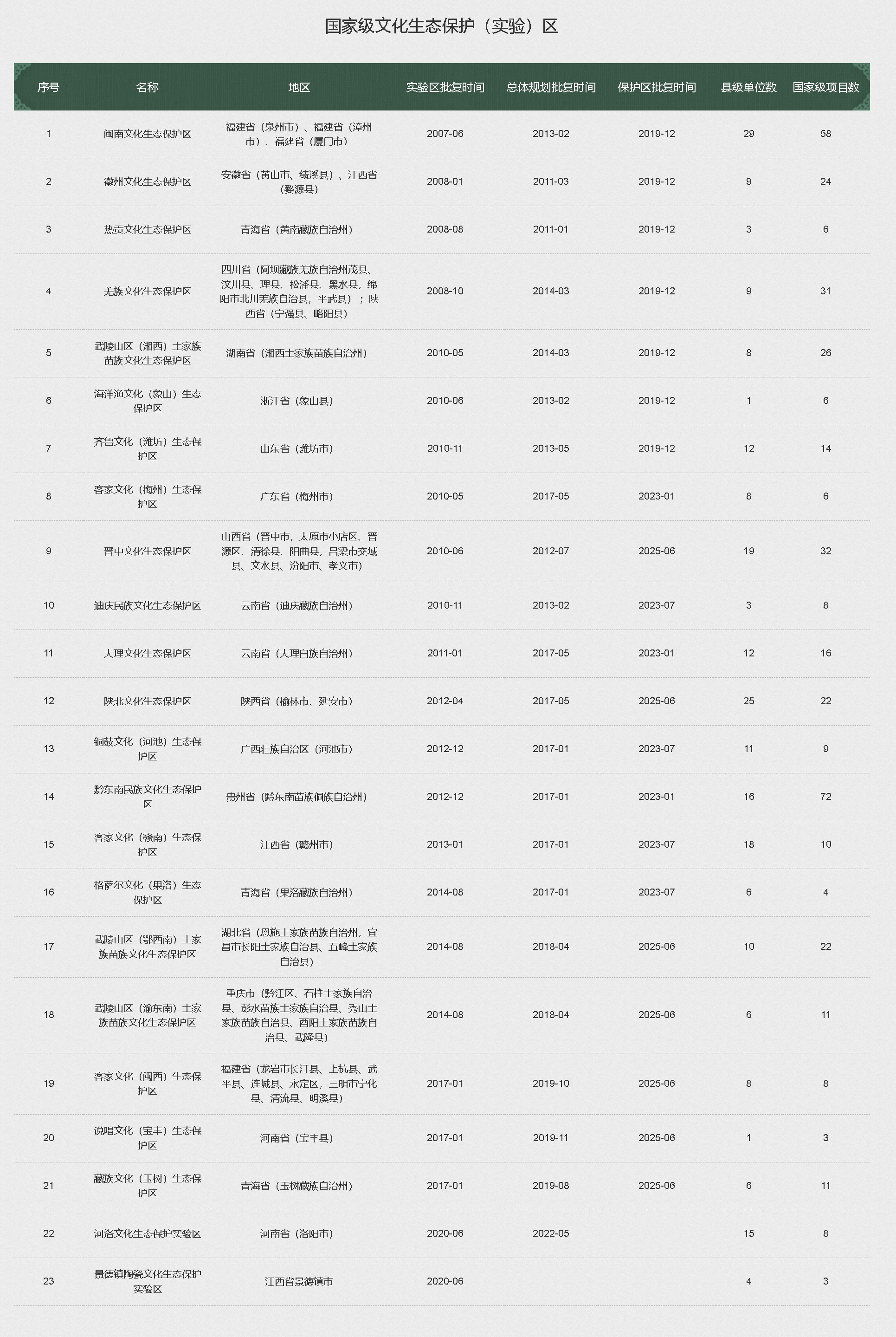 國家級文化生態(tài)保護(hù)區(qū)是指以保護(hù)非物質(zhì)文化遺產(chǎn)為核心,對歷史文化積淀豐厚、存續(xù)狀態(tài)良好、具有重要價(jià)值和鮮明特色的文化形態(tài)進(jìn)行整體性保護(hù),經(jīng)文化和旅游部同意設(shè)立的特定區(qū)域。設(shè)立文化生態(tài)保護(hù)區(qū),是我國獨(dú)具特色的非遺保護(hù)制度。