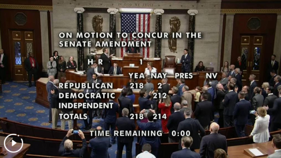新華社紐約7月3日電 美國(guó)國(guó)會(huì)眾議院3日下午以218票贊成、214票反對(duì)的表決結(jié)果通過(guò)了總統(tǒng)特朗普推動(dòng)的“大而美”稅收與支出法案。