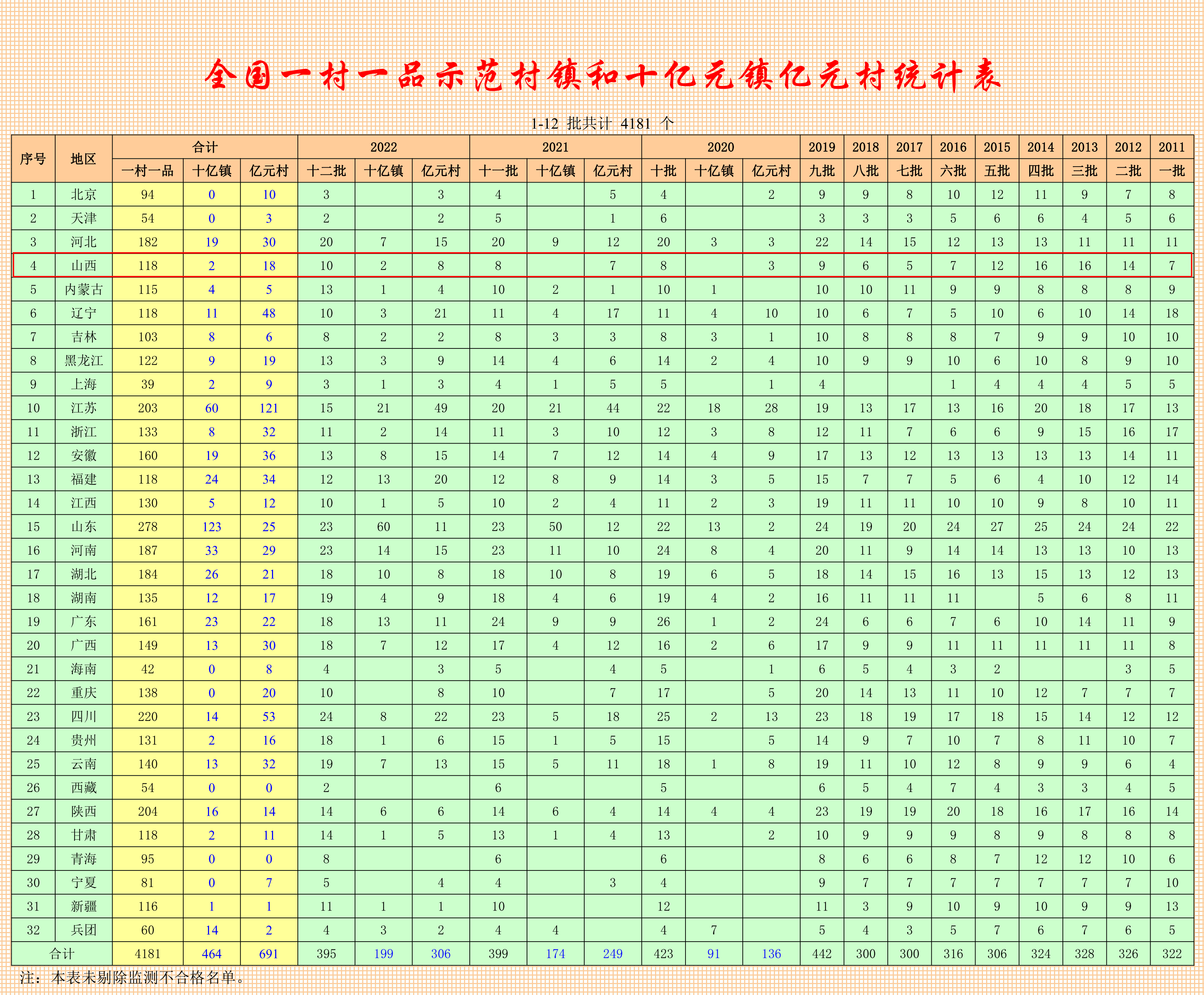 運(yùn)城市臨猗縣廟上鄉(xiāng)(冬棗)、臨猗縣北辛鄉(xiāng)(蘋(píng)果)入選2022年全國(guó)鄉(xiāng)村特色產(chǎn)業(yè)產(chǎn)值超十億元鎮(zhèn)。2022年全國(guó)鄉(xiāng)村特色產(chǎn)業(yè)產(chǎn)值超億元村我省入選8個(gè),分別為清徐縣孟封鎮(zhèn)楊房村(食醋)、陽(yáng)泉市郊區(qū)平坦鎮(zhèn)桃林溝村(休閑旅游)、晉城市陽(yáng)城縣北留鎮(zhèn)皇城村(休閑旅游)、朔州市懷仁市海北頭鄉(xiāng)海子村(肉羊)、朔州市懷仁市親和鄉(xiāng)南小寨村(羔羊)、晉中市祁縣趙鎮(zhèn)里村(肉牛)、呂梁市文水縣劉胡蘭鎮(zhèn)保賢村(肉牛)、呂梁市臨縣前安業(yè)鄉(xiāng)青塘村(粽子)。