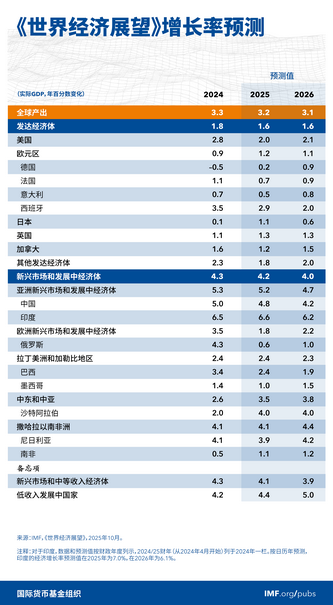 報(bào)告預(yù)計(jì),2025年世界經(jīng)濟(jì)將增長(zhǎng)3.2%,較今年7月預(yù)測(cè)值上調(diào)0.2個(gè)百分點(diǎn);2026年將增長(zhǎng)3.1%,與7月預(yù)測(cè)值持平。