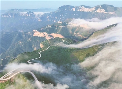 村民們參與修建的水泥路蜿蜒地通往和順縣松煙鎮(zhèn)“云端之上”森林康養(yǎng)基地(資料圖片)。