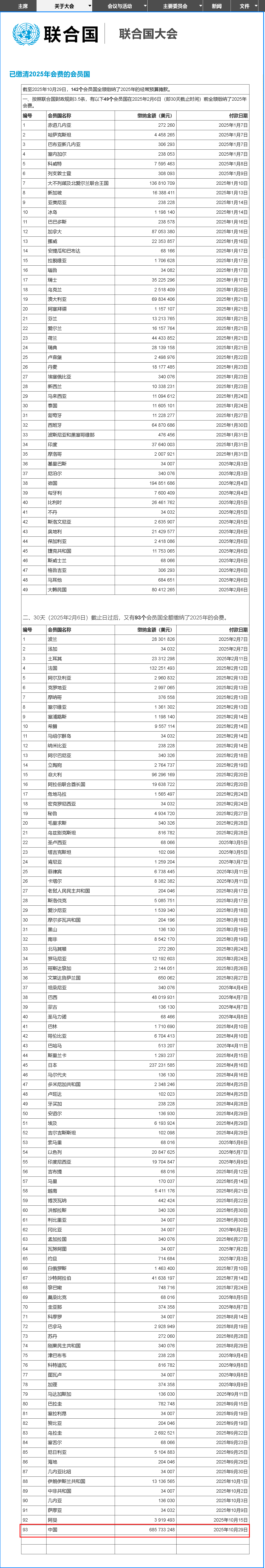 據(jù)聯(lián)合國介紹,中國是聯(lián)合國第二大會費(fèi)分?jǐn)倗?,所分?jǐn)偙阮~為20%,僅次于美國的22%,遠(yuǎn)高于排在第三的日本的6.93%。