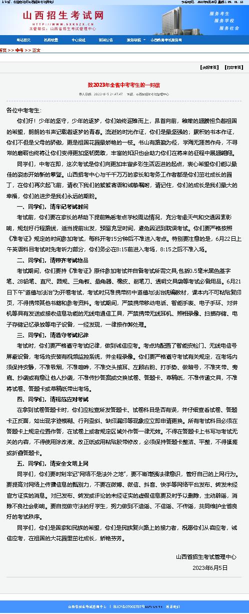 山西省2023年中考時間為6月20日、21日、22日。記者6月19日從山西省招考中心獲悉,今年全省中考報名356516人,比去年減少27708人,全省共設(shè)11個考區(qū)、353個考點、11944個考場。