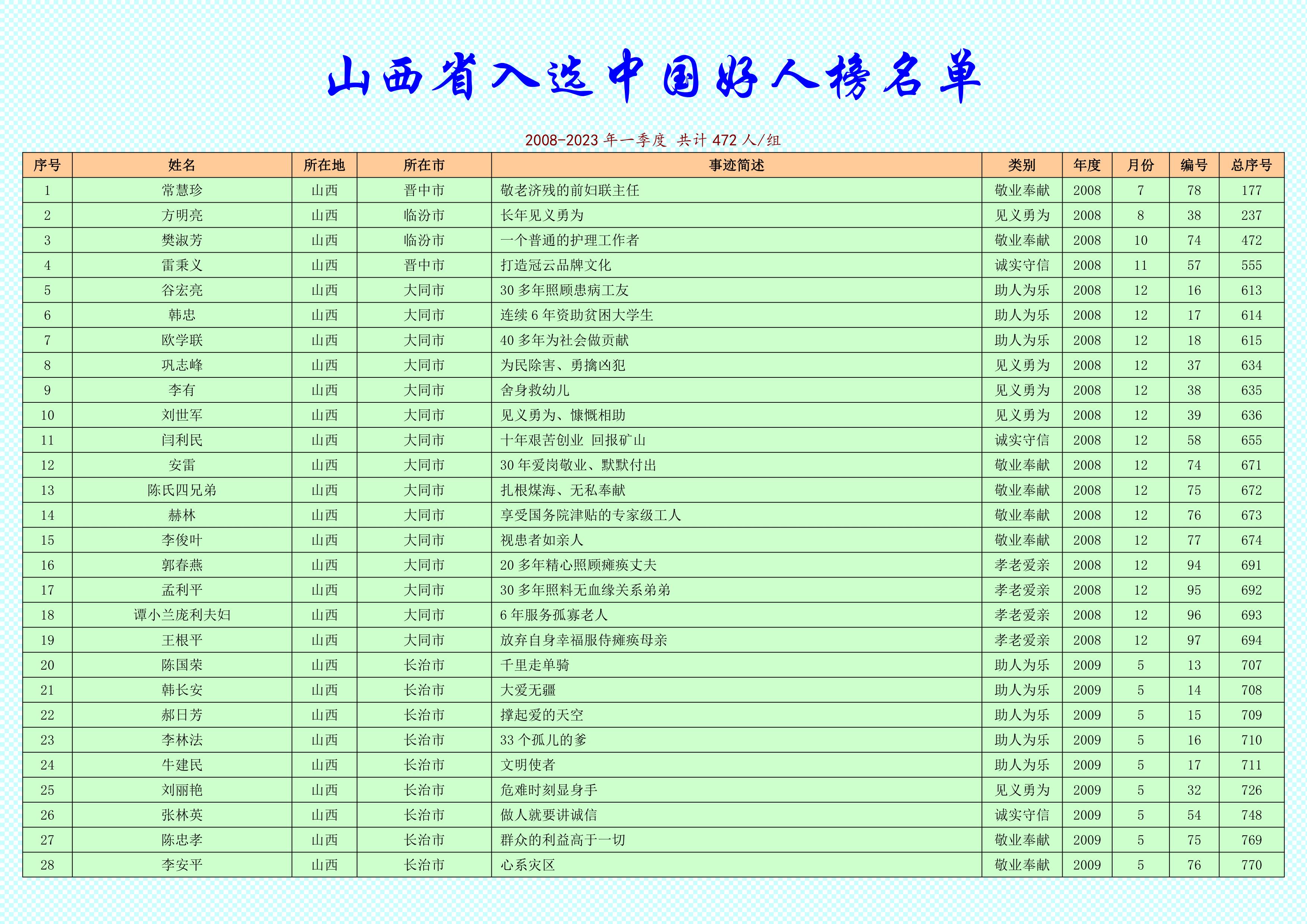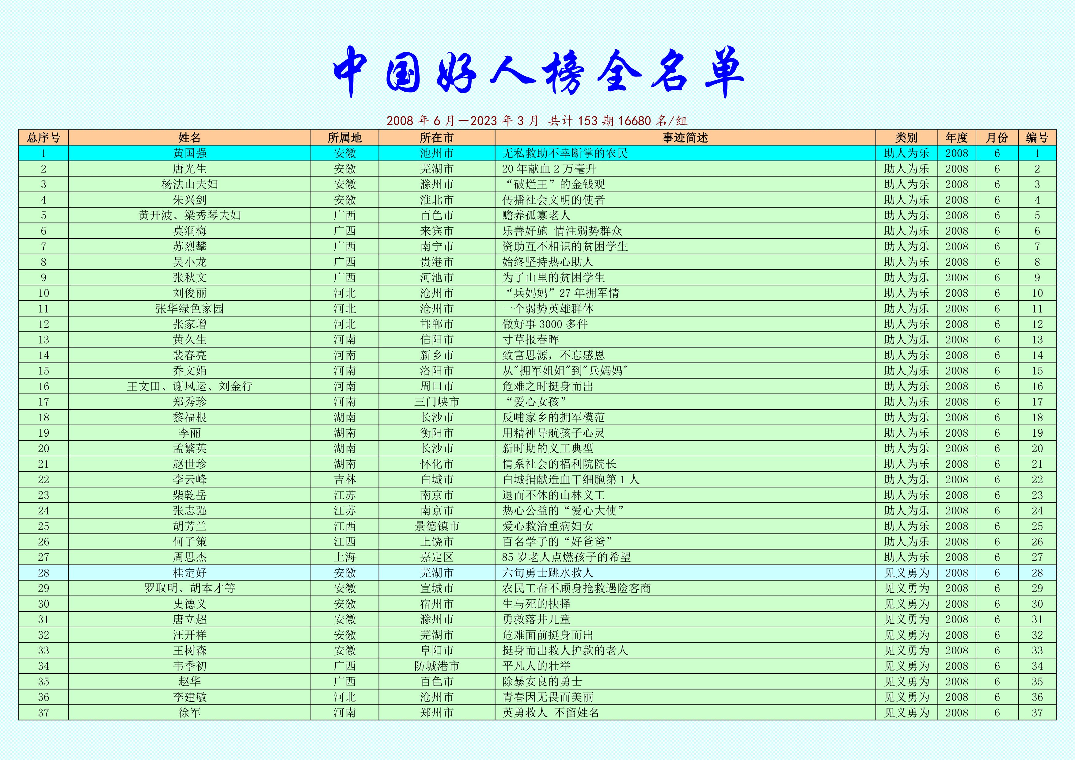 上榜好人中,有用皮影技藝幫扶殘疾人就業(yè),致力于非遺傳承的北京“影人姐姐”王麗娟;有堅守諾言,替犧牲戰(zhàn)友盡孝36年的江蘇老兵李先南;有13年5次救火,感召身邊500余名出租車司機(jī)自發(fā)組建志愿服務(wù)隊的吉林“好的哥”湯萬春;有堅守山村38年,照亮孩子出山路的重慶鄉(xiāng)村教師陳申福;有創(chuàng)新摸索蹚出致富路,為鄉(xiāng)村振興貢獻(xiàn)力量的新疆生產(chǎn)建設(shè)兵團(tuán)“新農(nóng)人”寇曉燕……偉大源于平凡、平凡造就偉大。他們積極傳播真善美、傳遞正能量,用實(shí)際行動關(guān)愛社會、溫暖他人,是我們身邊的英雄、時代的脊梁。