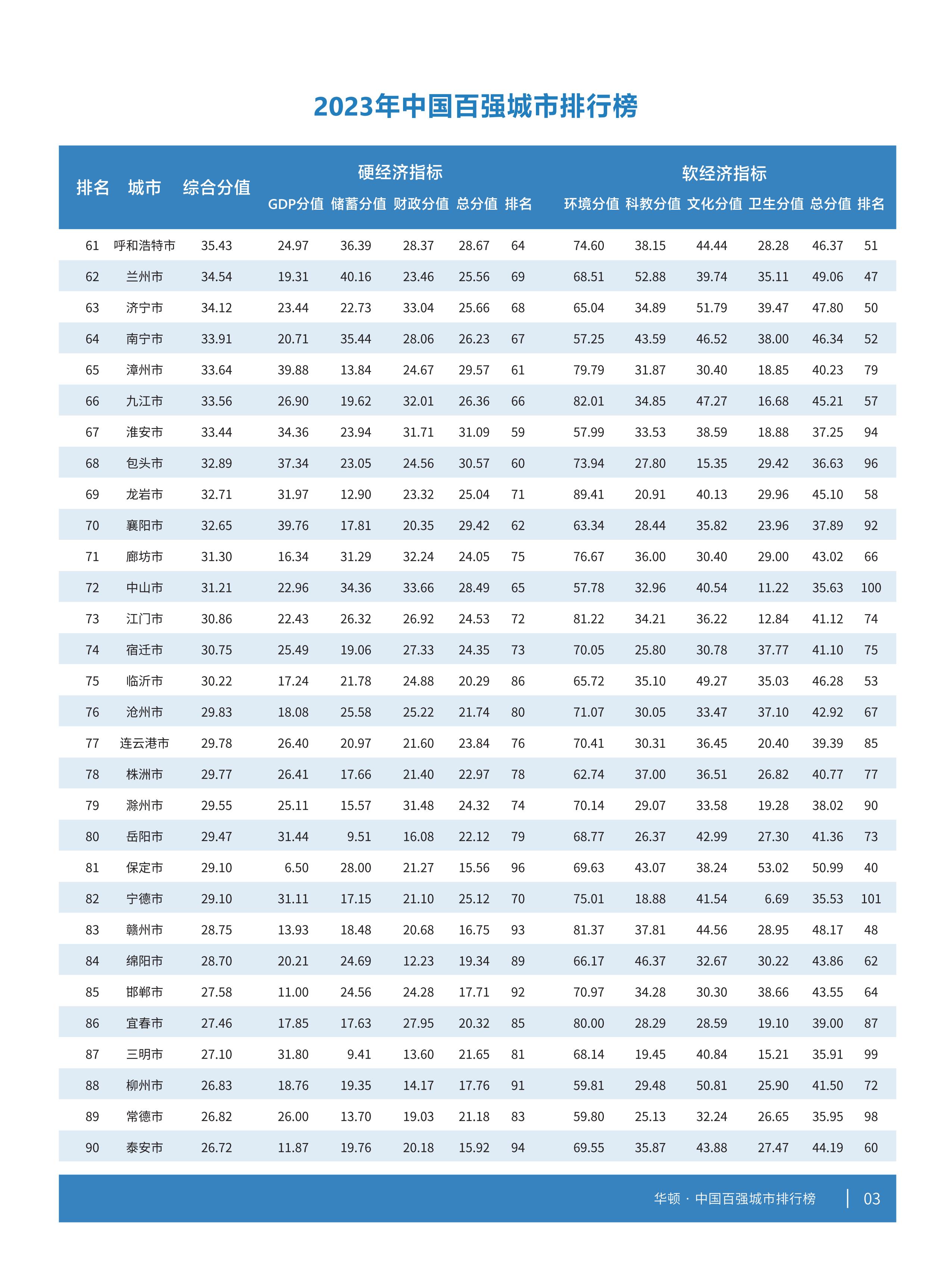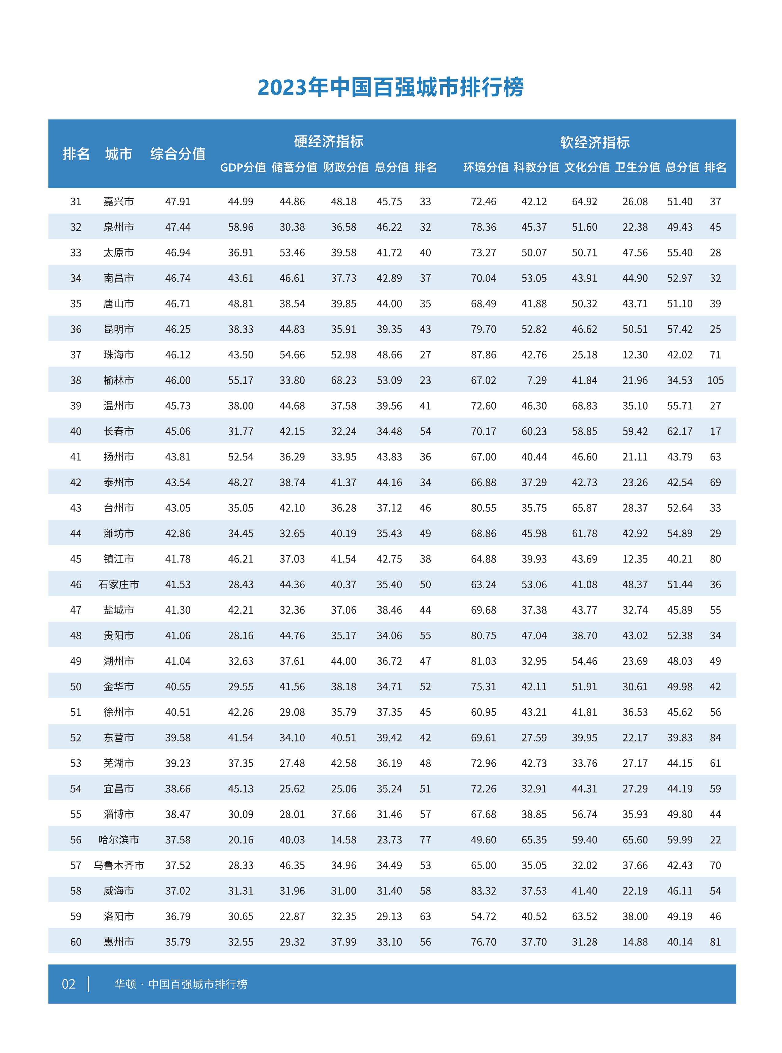 百強城市位次競爭依舊激烈,2023年中國百強城市排行榜上,有36個城市排名上升,40個城市排名下降,24個城市排名保持不變。合肥連續(xù)五年排名上升,位次由2018年的第31位連續(xù)躍升至2023年的第17位,其中科教指標更是穩(wěn)居全國第10位。