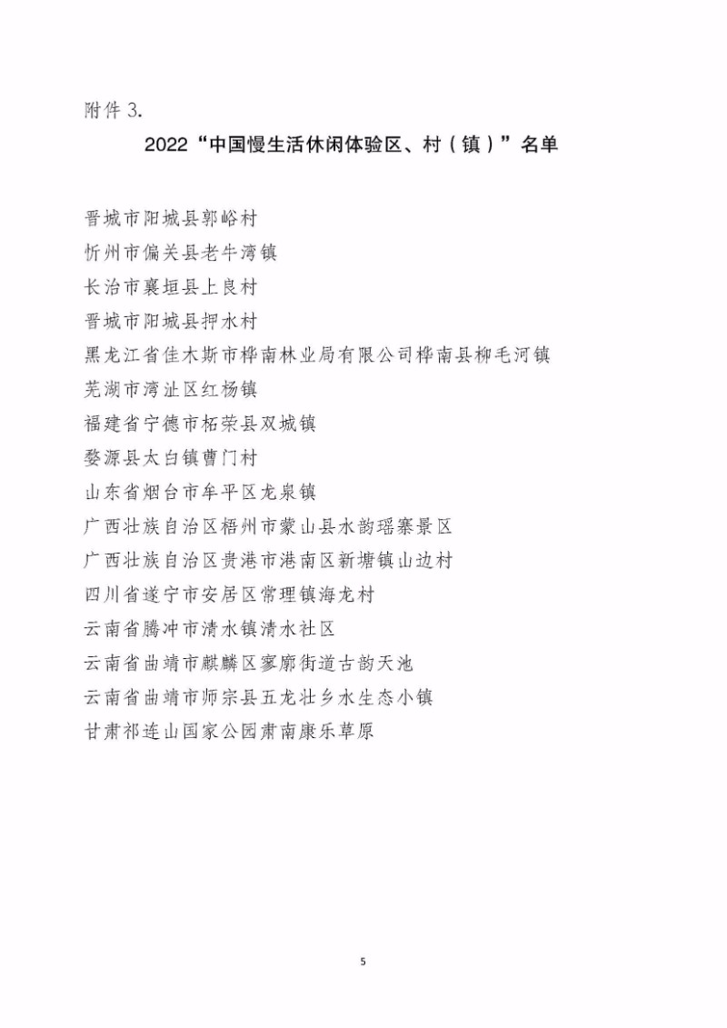 中國慢生活休閑體驗區(qū)4處: