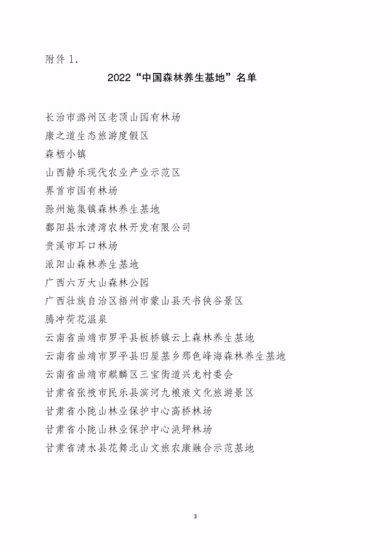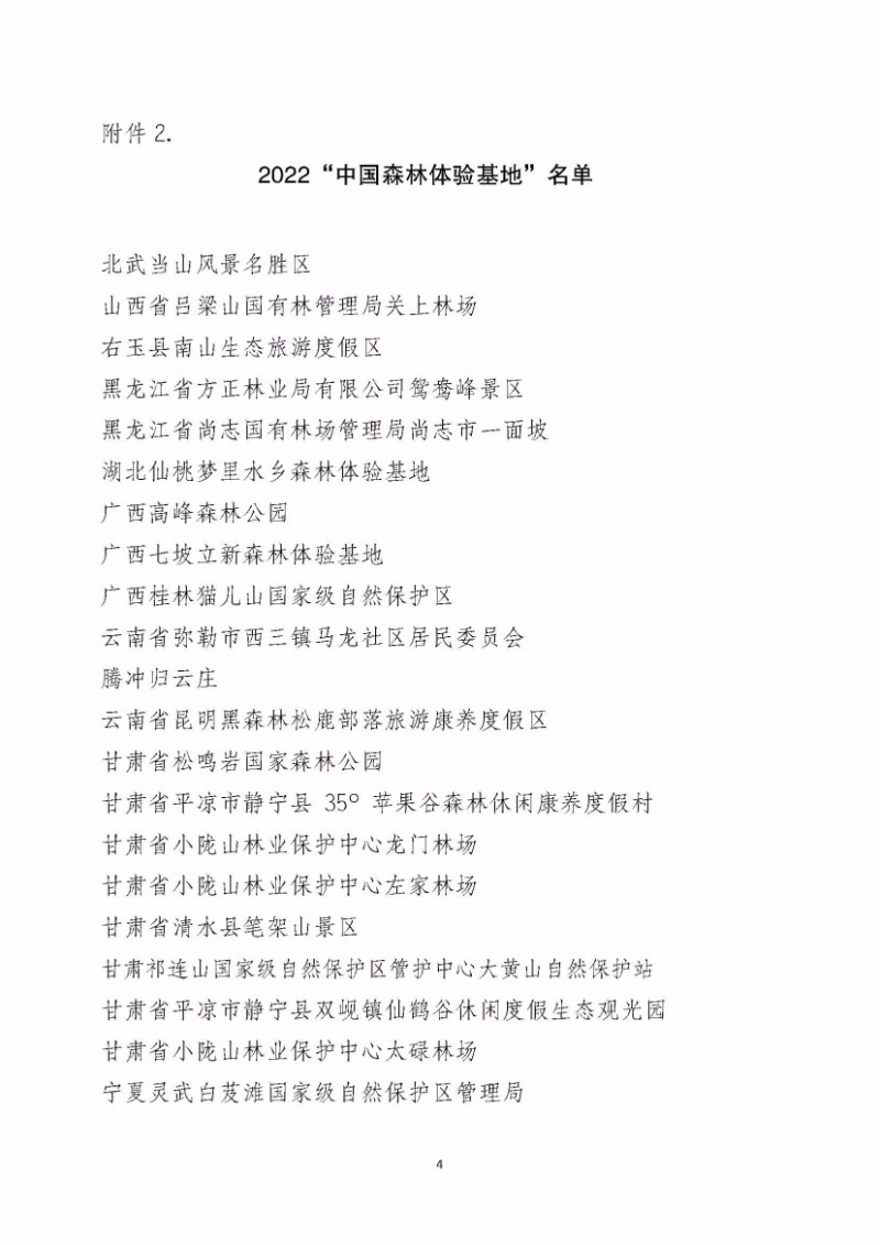 中國森林養(yǎng)生基地4處: