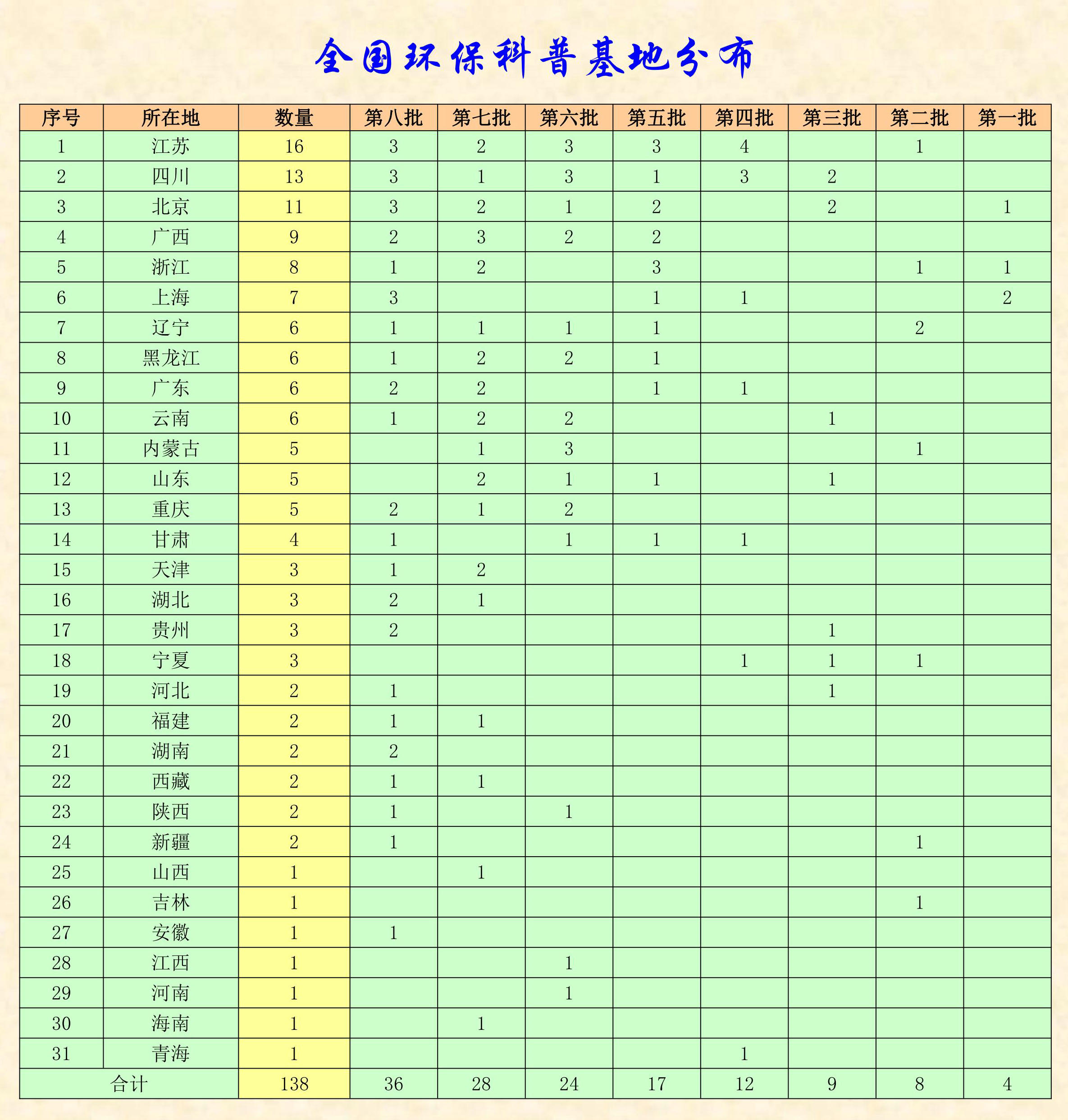 國家生態(tài)環(huán)境科普基地評審創(chuàng)建工作于2006年啟動實施,截至目前,全國共創(chuàng)建科普基地138家,覆蓋31個省份,類型涵蓋科普場館、自然保護地、企業(yè)、產(chǎn)業(yè)園區(qū)、科研院所、教育培訓(xùn)六個類別,年服務(wù)上億人次,已成為展示生態(tài)環(huán)境保護科技成果與生態(tài)文明實踐成就的重要場所,向公眾普及生態(tài)環(huán)境科技知識、提高全民生態(tài)與科學(xué)文化素質(zhì)的重要陣地。